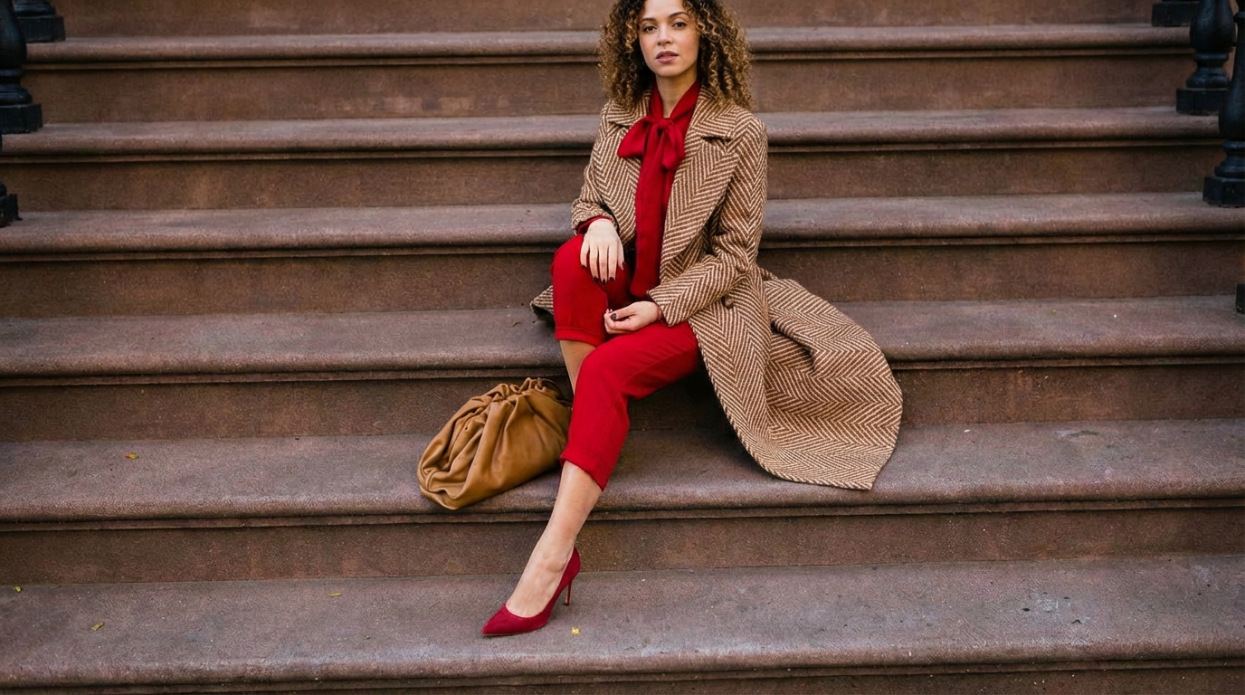 Jako třeba červená. Pokud ovšem máte odvahu a milujete červenou, i ta je v kombinaci s hnědou velmi sofistikovaným outfitem.