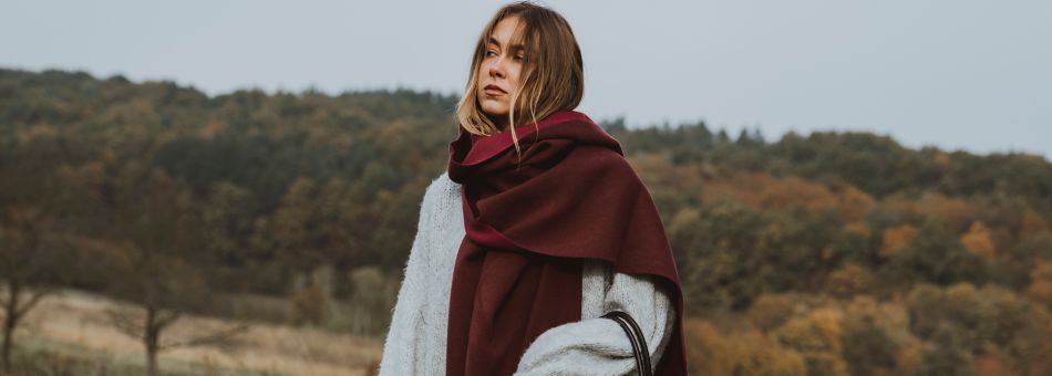 Bordó šála jako nepřehlédnutelný detail podzimního oděvu