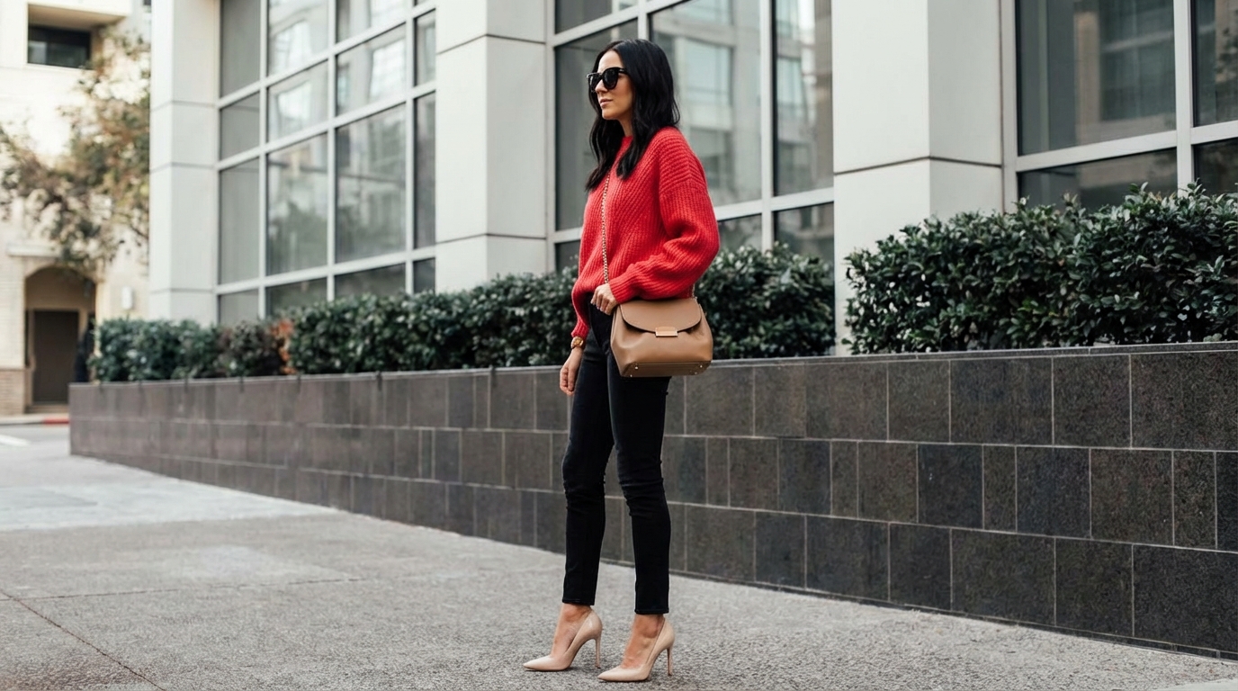 Tip: Když obléknete štrasovou nebo jinak lesklou sukni a červený rolák, nebo vysoké kozačky k pleteným červeným šatům, budete nepřehlédnutelná i po setmění. :-)