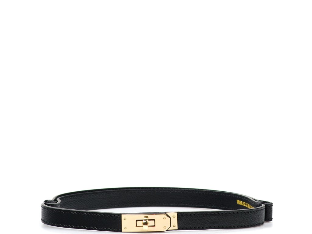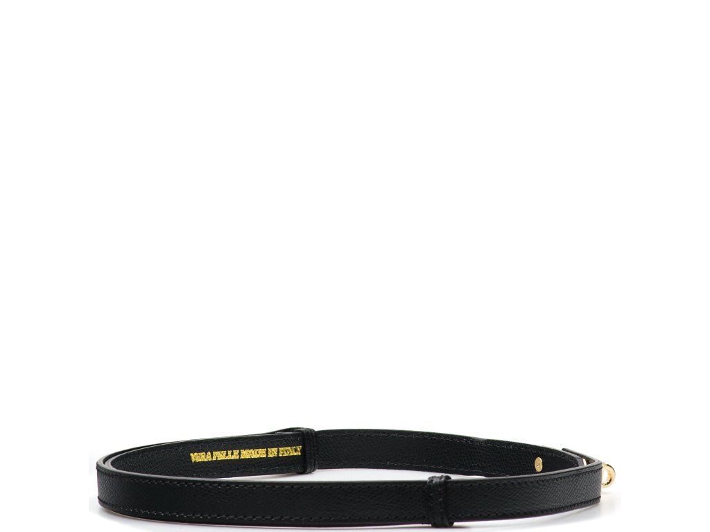 Dámský kožený opasek v černé barvě. Opasek má sponu ve zlaté barvě. Opasek je skvělý k doplnění outfitu. Opasek se posouvá dle využití.