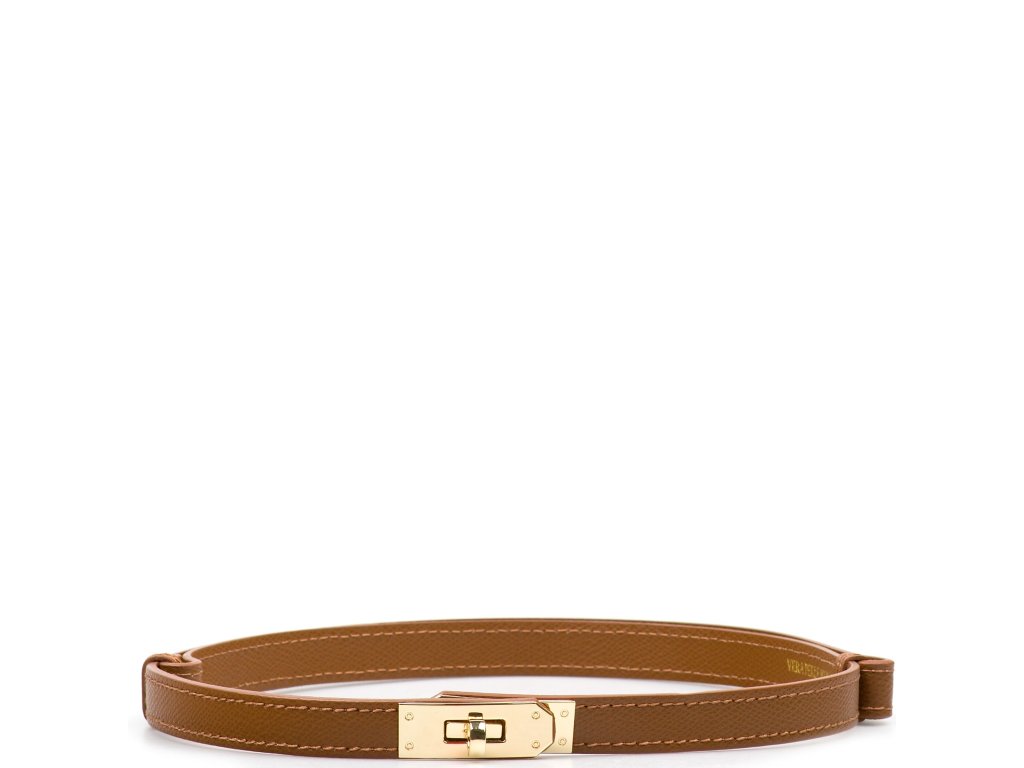 Dámský kožený opasek v koňakově hnědé barvě. Opasek má sponu ve zlaté barvě. Opasek je skvělý k doplnění outfitu. Opasek se posouvá dle využití.