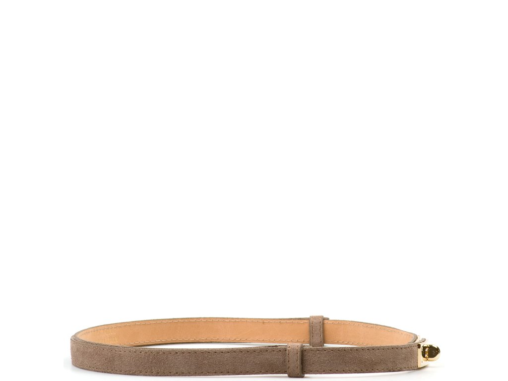Dámský semišový opasek ve fango barvě je elegantním a stylovým doplňkem, který dodá tvému outfitu jemnost a šmrnc. Zdobí ho spona ve zlaté barvě, která podtrhuje jeho sofistikovaný vzhled. Díky posuvnému zapínání lze opasek snadno přizpůsobit dle potřeby, což zajišťuje pohodlné nošení. Ideální volba pro doladění každodenního i elegantního outfitu.