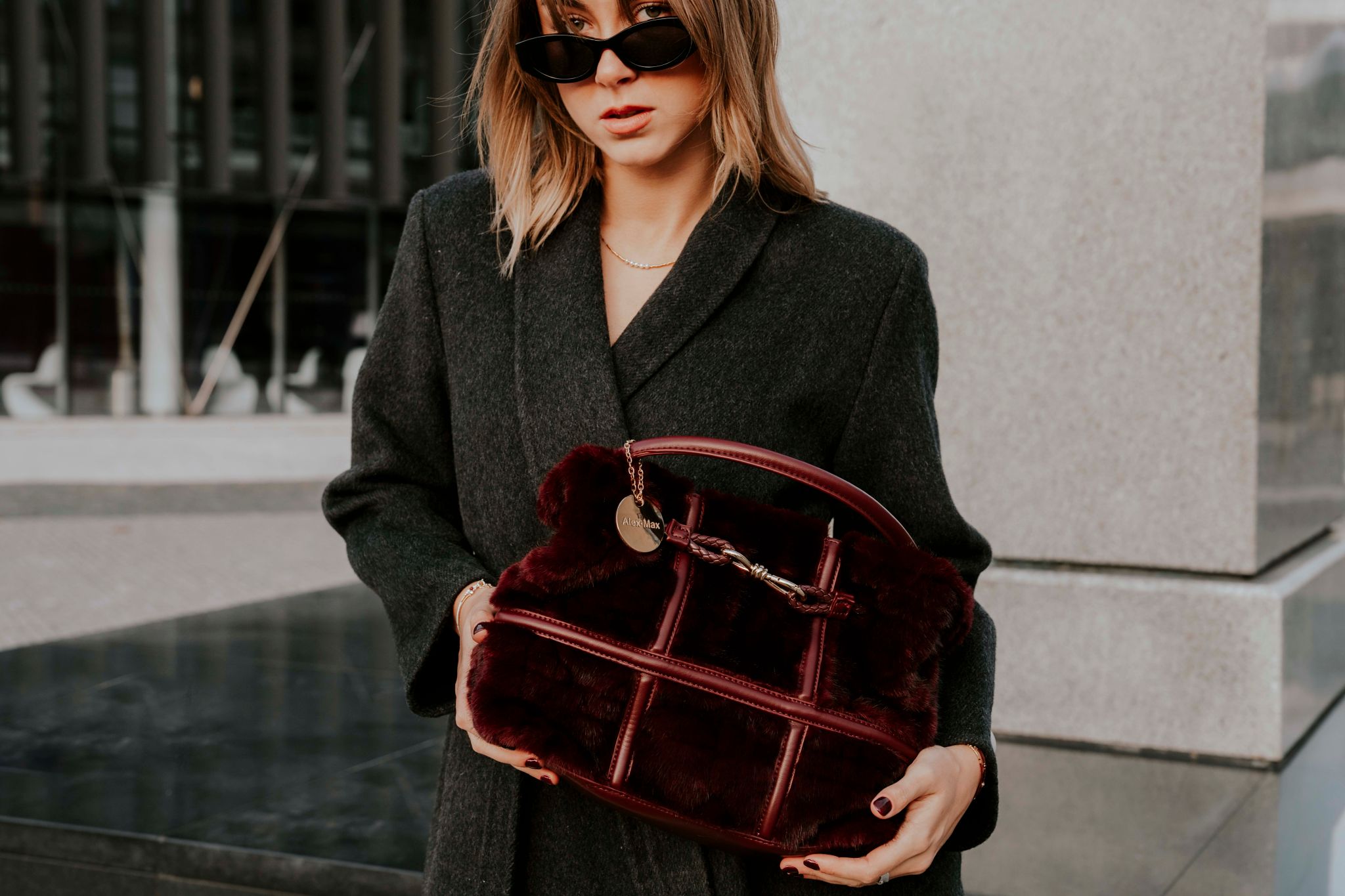Stylová kabelka s kožešinou v bordó barvě působí luxusně a zároveň moderně. Je bez venkovních kapes, takže vynikne její čistý a sofistikovaný design. Interiér nabízí jednu prostornou hlavní kapsu a menší boční kapsu na drobnosti, která se uzavírá zipem. Součástí kabelky je přídavný popruh s karabinami, díky němuž ji lze pohodlně nosit i přes tělo. Kabelka se uzavírá zipem a její vzhled podtrhuje zlatý přívěsek Alex Max.