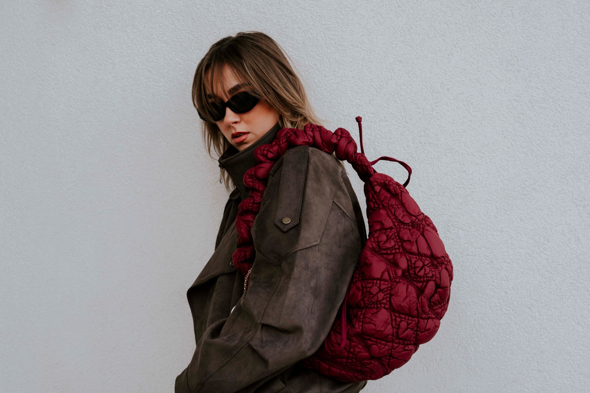 Prošívaná kabelka ve vínově červené barvě zaujme svým originálním designem a elegantním vzhledem. Interiér nabízí jednu prostornou hlavní kapsu a menší boční kapsu na zip, která umožňuje přehledné uspořádání všech nezbytností. Kabelka má pevný posuvný popruh, díky kterému lze kabelku nosit v ruce, přes rameno či přes tělo. Celkový vzhled dotváří zlatý přívěsek Alex Max, který kabelce dodává luxusní a moderní nádech.
