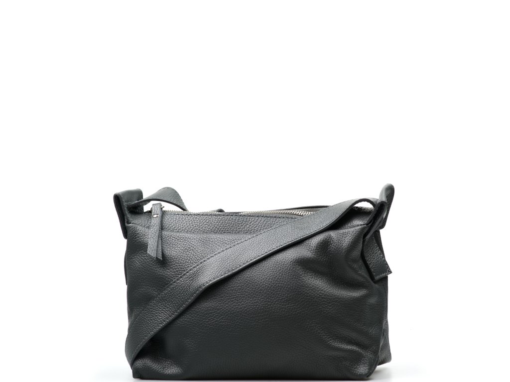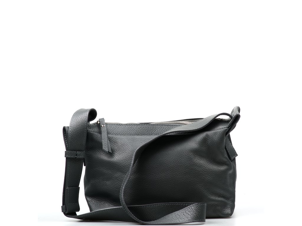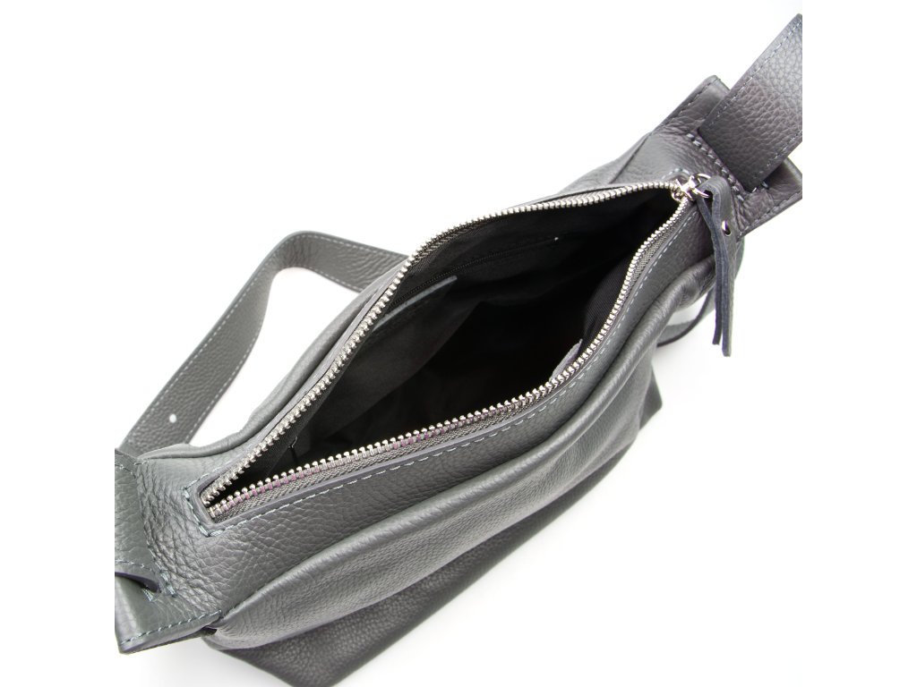 Kožená crossbody kabelka pro volný čas v šedé barvě. Kabelka má fixní popruh s možností regulace délky. Interiér kabelky má k dispozici jednu úložnou kapsu. Kabelka se uzavírá zipem.