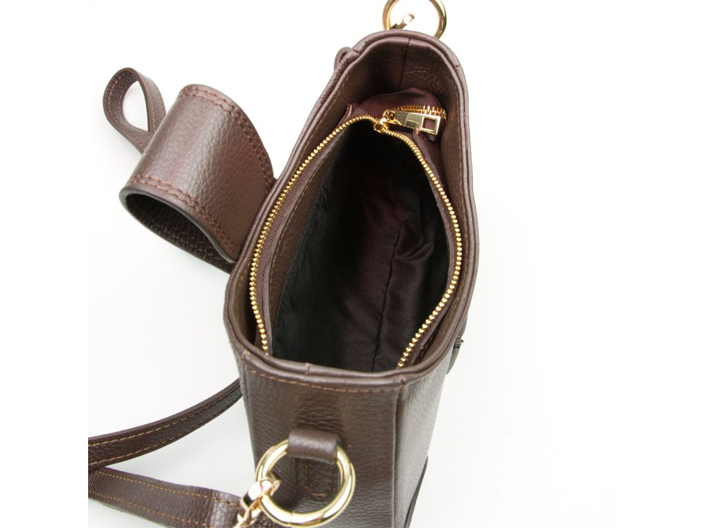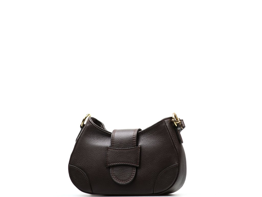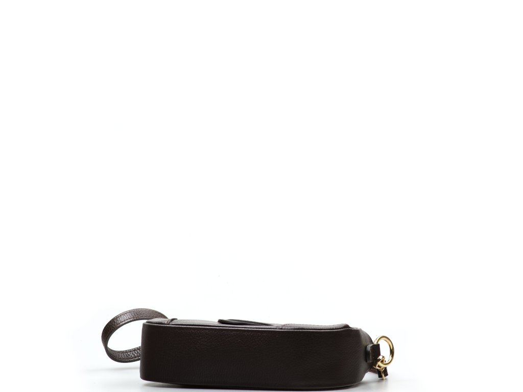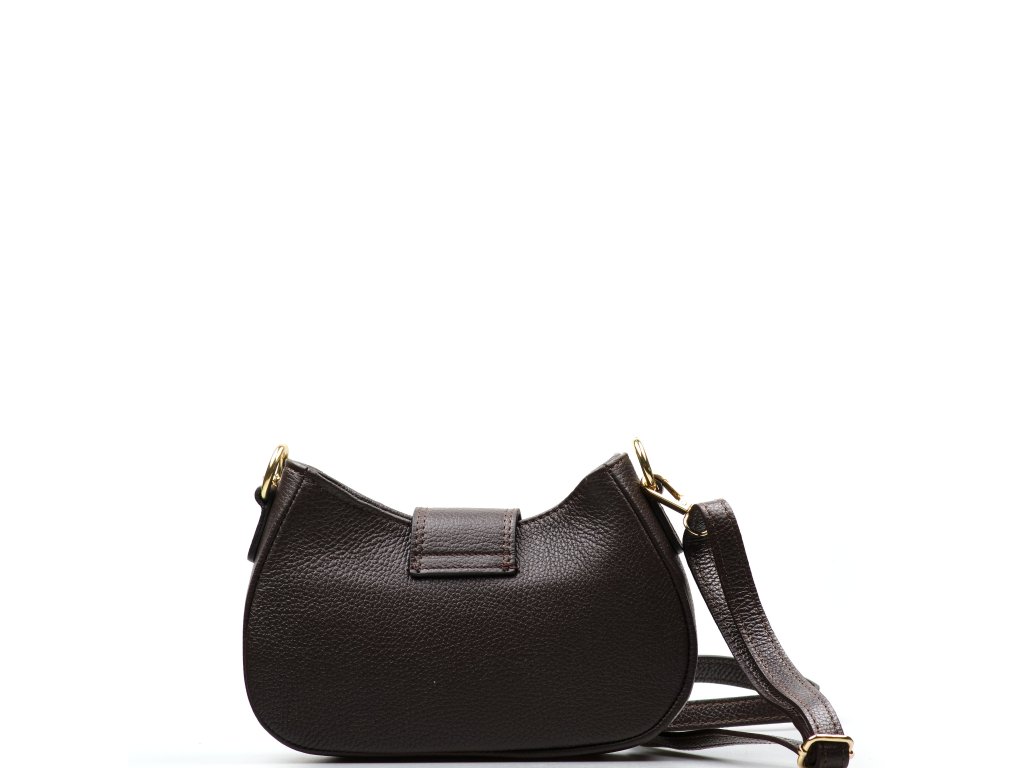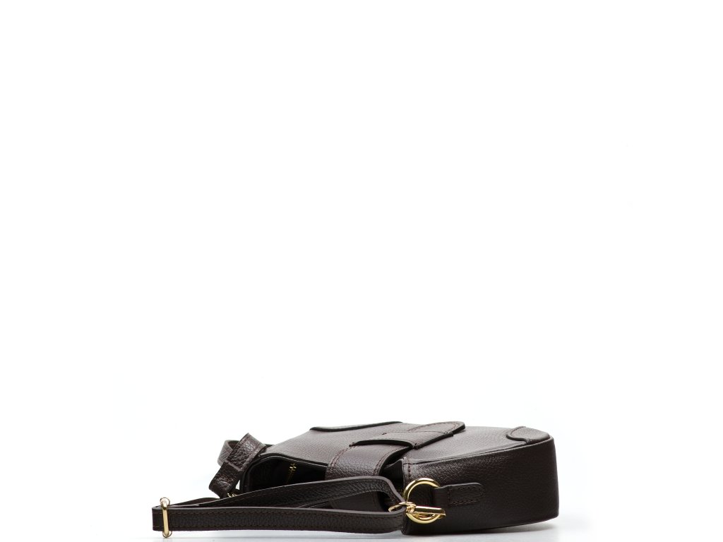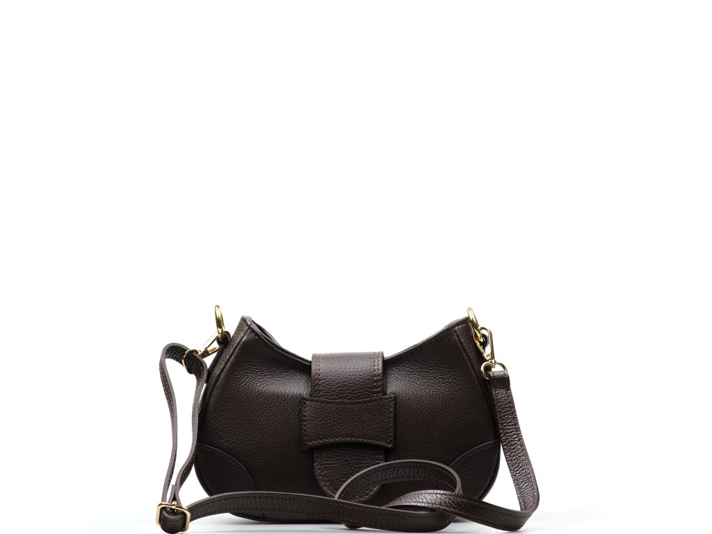 Elegantní crossbody kabelka z pravé kůže v tmavě hnědé barvě. Spojuje nadčasový design, kvalitní zpracování a praktické využitá, díky němuž se stane oblíbeným společníkem do práce, do města i pro volný čas. Součástí kabelky je přídavný popruh s karabinami. Kabelka se uzavírá na zip a klopou na cvoček.