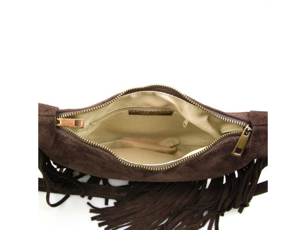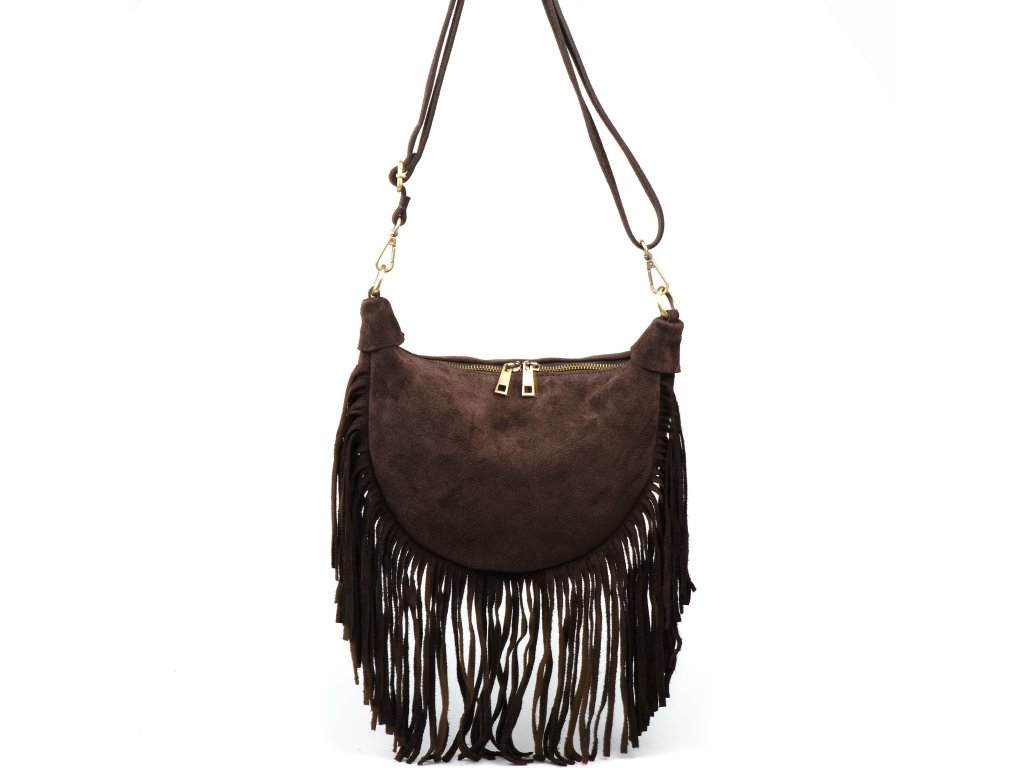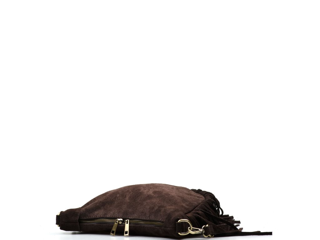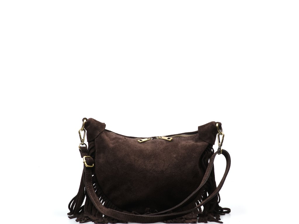 Kožená kabelka s kovovým řetízkem v tmavě hnědé barvě. Kabelka má posuvný přídavný popruh. Kabelku je tak možno nosit v ruce, přes rameno či přes tělo. Kabelka má jednu úložnou kapsu a jednu malou boční kapsu na zip. Kabelka se uzavírá zipem.