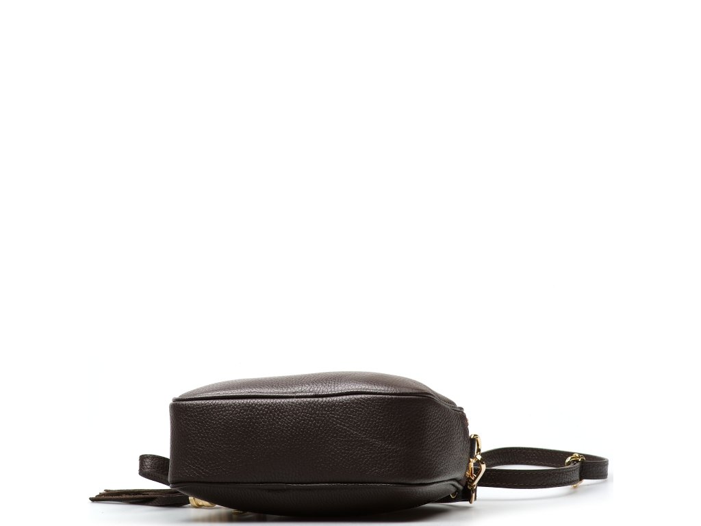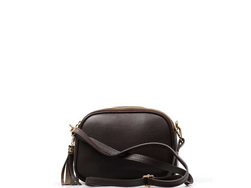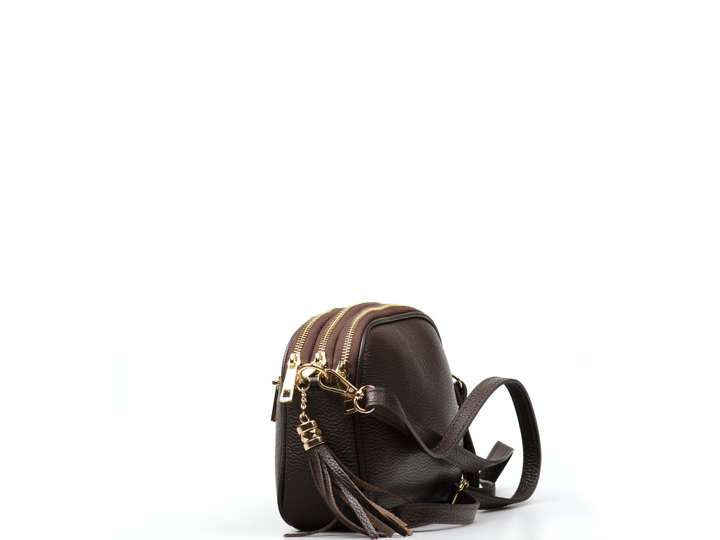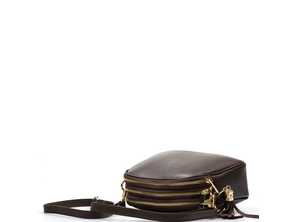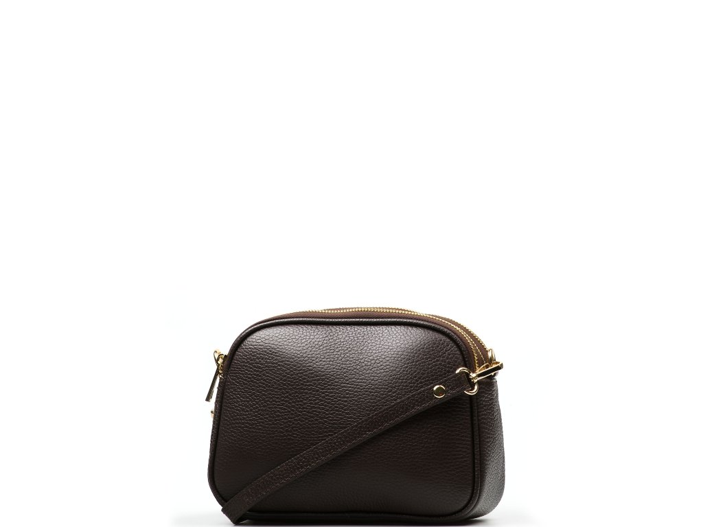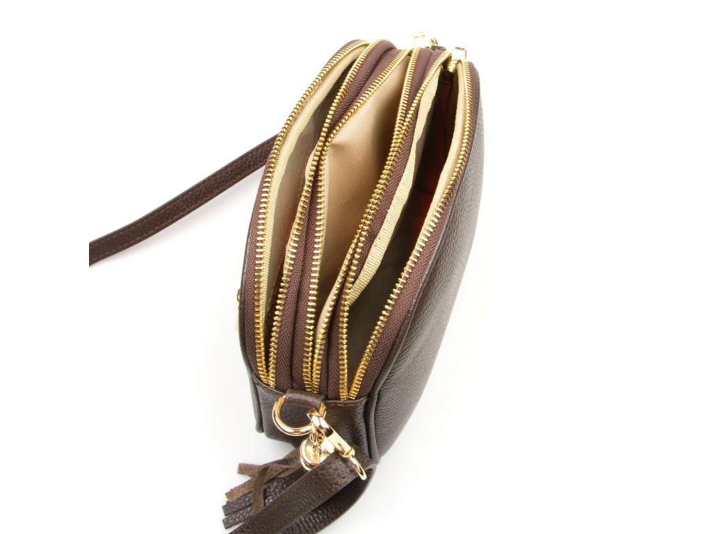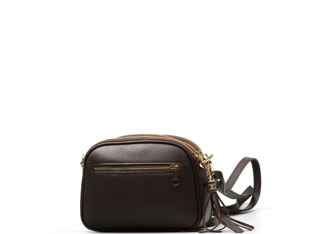 Dámská kožená crossbody kabelka pro volný čas v hnědé barvě. Elegantní a praktická crossbody kabelka s venkovní zadní kapsou, se třemi samostatnými úložnými kapsami, jež jsou všechny samostatně uzavíratelné zipem.