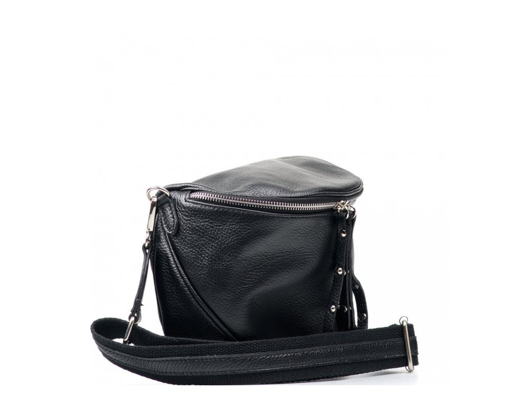 Dámská kožená crossbody ledvinka v černé barvě. Ledvinka doslova crossbody (přes tělo) je dalším způsobem, jak ledvinku nosit jako master. Kabelka stylu velká ledvinka se nosí nakrátko přes tělo. Interiér má k dispozici jednu hlavní úložnou kapsu. Uzavírá se zipem.