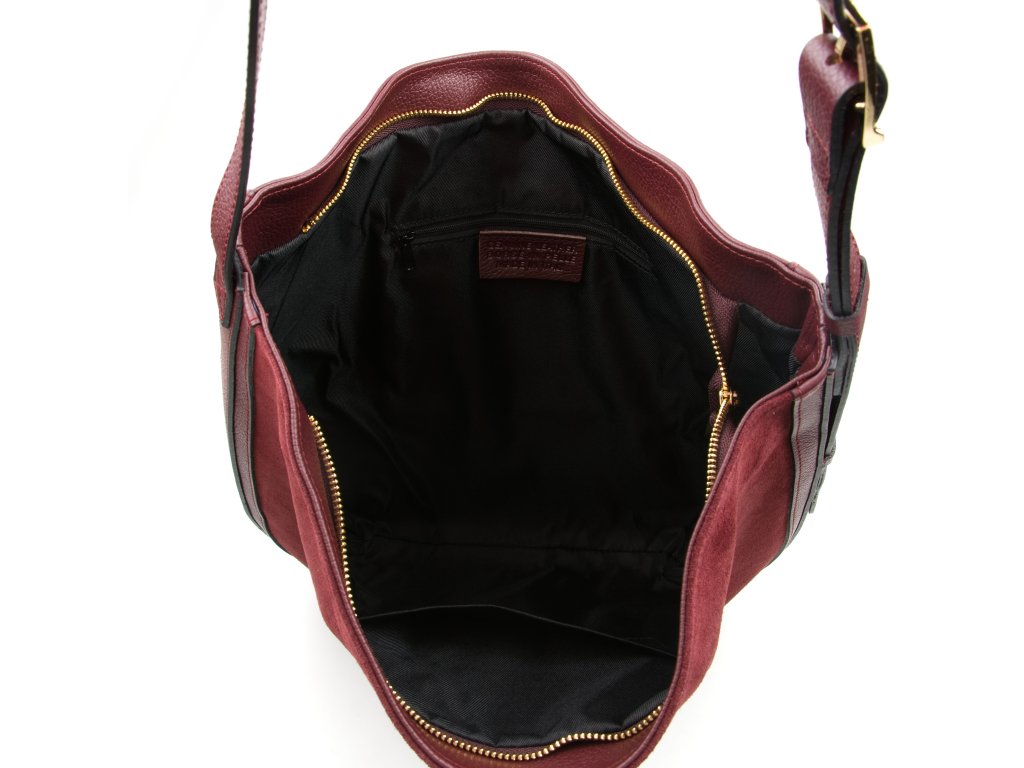 Velká kožená kabelka přes rameno v bordó barvě je ideálním spojením elegance a praktičnosti. Nabízí prostorný interiér s jednou hlavní kapsou a menší boční kapsou na drobnosti, která se uzavírá zipem. Hlavní část kabelky je chráněna stylovým ozdobným klipem, jenž dodává celkovému designu sofistikovaný a moderní vzhled. Perfektní doplněk pro každodenní nošení i výjimečné příležitosti.