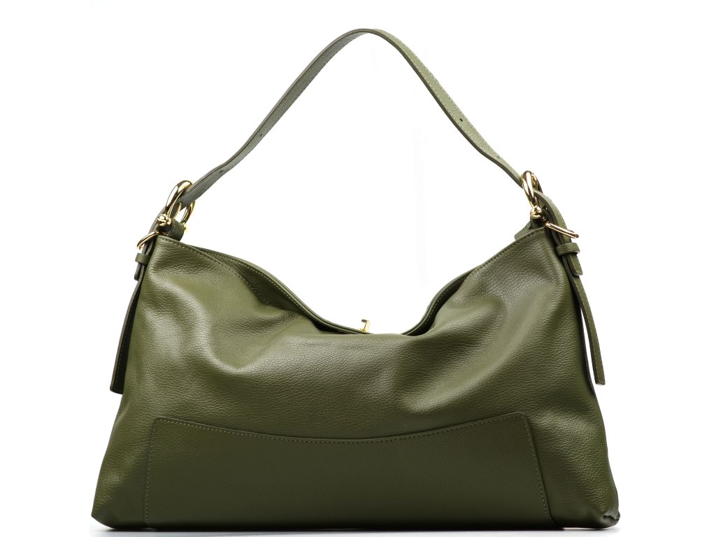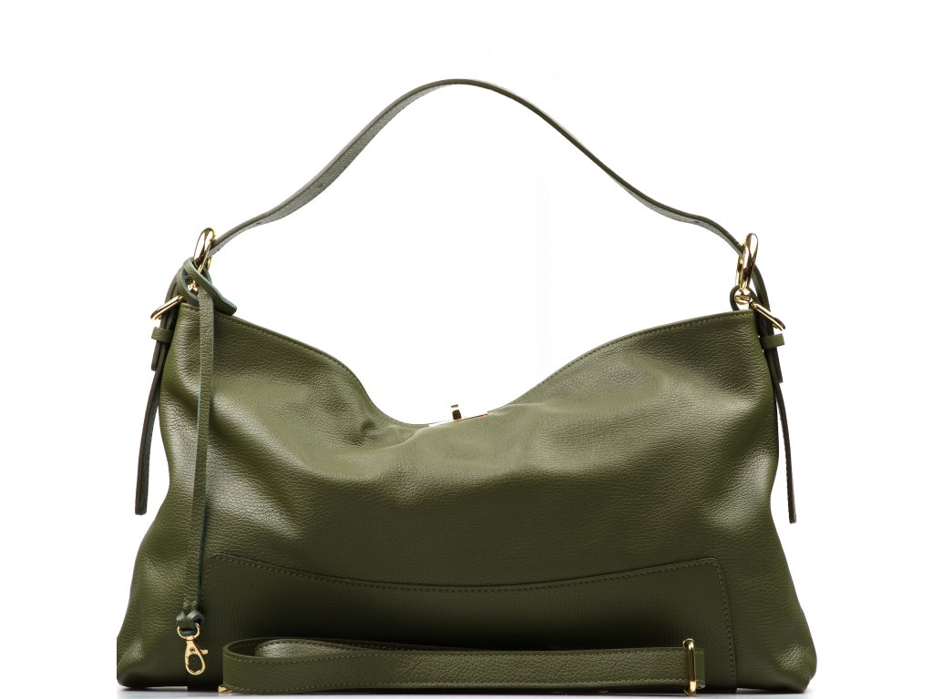 Dámská kožená kabelka v olivově zelené barvě jako stvořená pro volný čas – lehce ji vezmete do ruky, hodíte přes rameno, a díky přídavnému popruhu s karabinami ji během chvilky proměníte i na pohodlnou crossbody. Minimalistický vnitřní prostor s jednou hlavní úložnou kapsou pojme vše, co potřebujete mít u sebe, aniž by kabelka působila objemně. Zapínání na zip udrží vaše věci bezpečně na místě, ať jste ve městě, na cestách nebo na procházce.