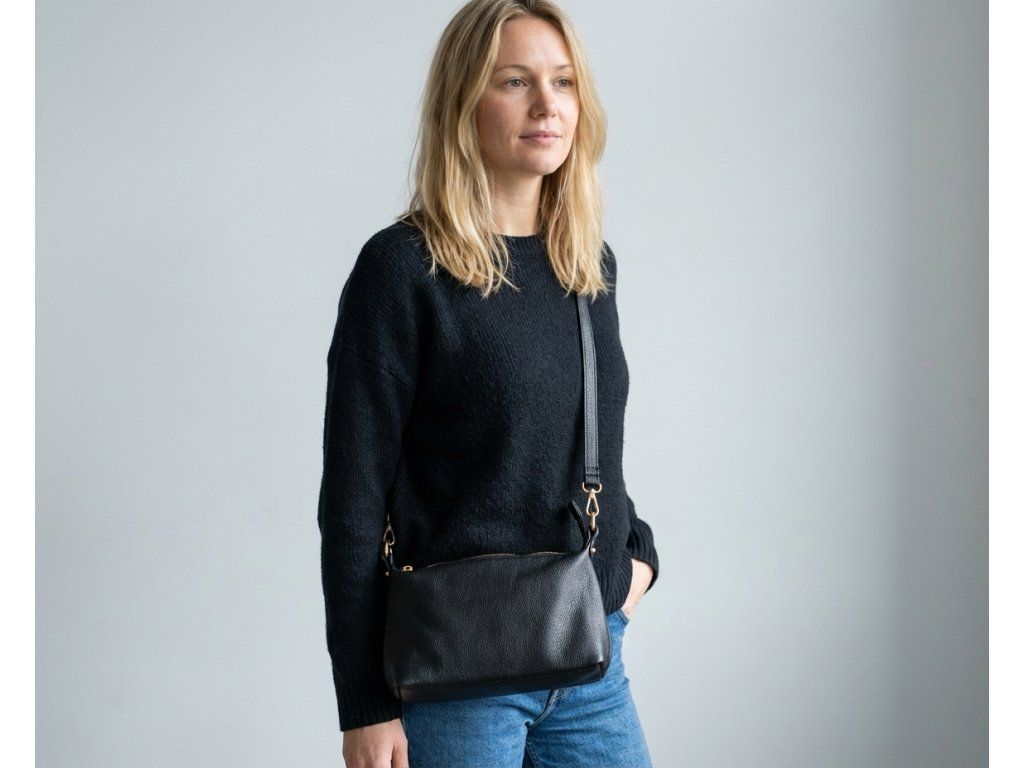 Elegantní černá kožená kabelka, která se snadno sladí s každým outfitem. Uvnitř najdete jednu hlavní přihrádku a menší boční kapsu na zip – ideální na klíče, telefon nebo drobnosti, které chcete mít hned po ruce. Kabelka se zapíná na zip, takže vaše věci budou bezpečně uložené. Součástí jsou dva přídavné popruhy: kratší pro nošení v ruce nebo přes rameno a druhý, nastavitelný, pro pohodlné nošení přes tělo.