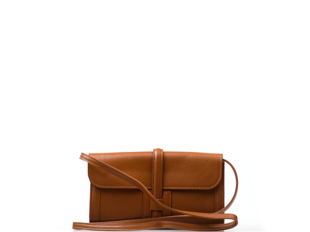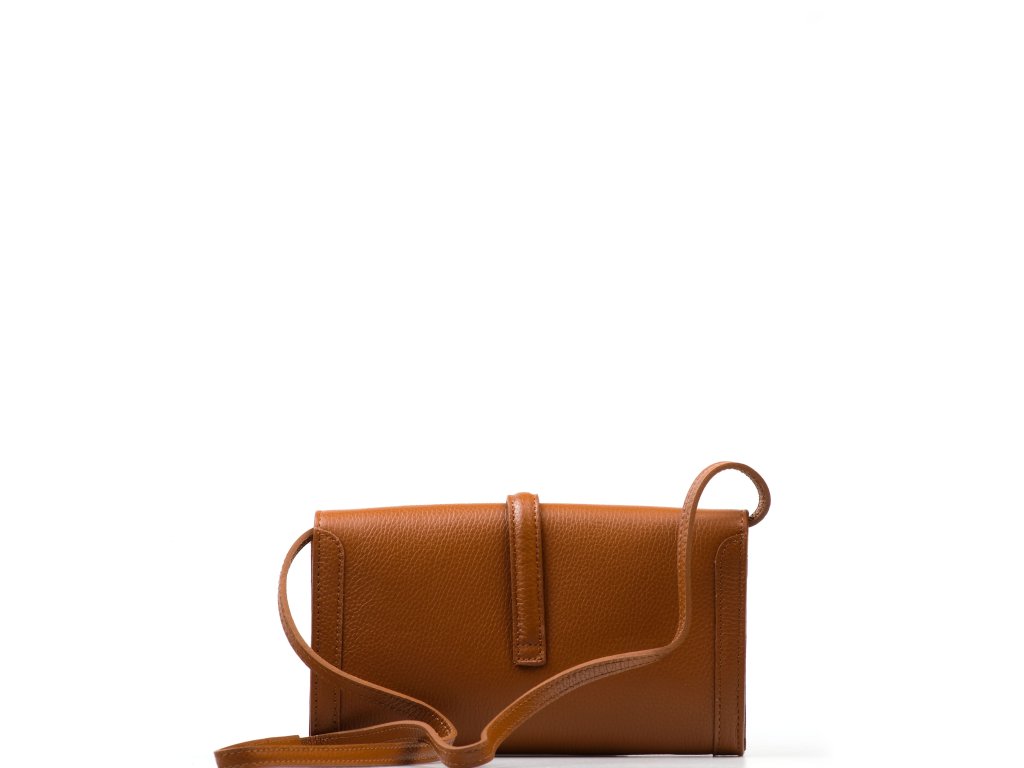 Elegantní koňakově hnědá kožená kabelka, která zaujme na první pohled. Klopa s ozdobným zapínáním dodává modelu rafinovaný detail, díky kterému vypadá stejně dobře na večírku i na každodenní procházce městem. Nosíte ji jako psaníčko v ruce nebo přehodíte přídavný popruh přes tělo – volba je jen na vás. Uvnitř najdete prostornou hlavní kapsu a praktickou zadní kapsu na zip pro věci, ke kterým potřebujete rychlý přístup.
