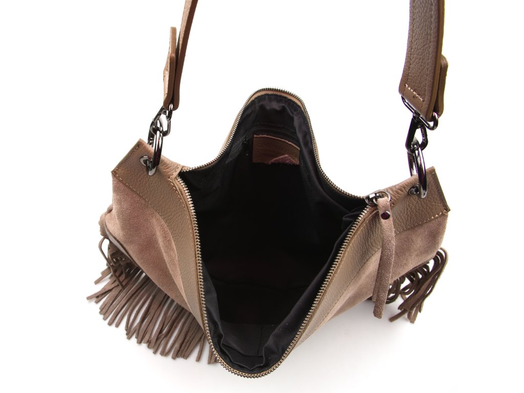 Semišová kožená kabelka v elegantní fango barvě je ideálním spojením stylu, kvality a praktičnosti. Díky přídavným popruhům ji lze nosit v ruce, přes rameno nebo jako crossbody, takže se skvěle přizpůsobí každé příležitosti. Uvnitř se nachází prostorná hlavní kapsa a menší boční kapsa na zip pro přehledné uložení všech nezbytností. Kabelka se uzavírá zipem, který zajistí bezpečí tvých věcí. Nadčasový doplněk, jenž dodá tvému outfitu eleganci, šmrnc a osobitý styl.
