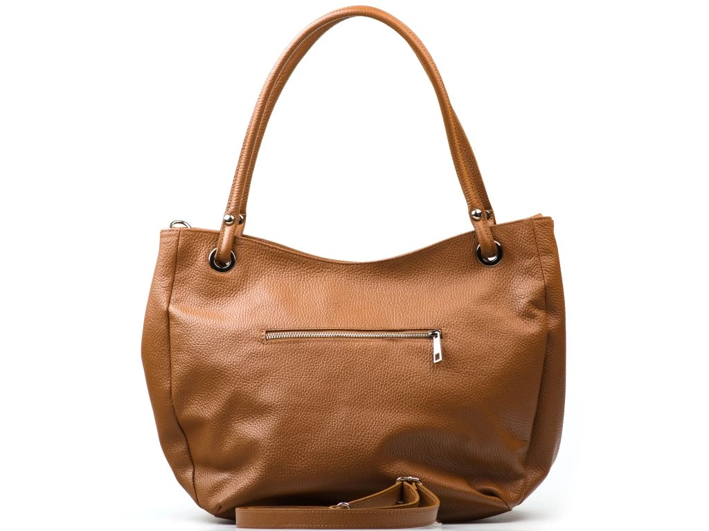 Kožená kabelka přes rameno v elegantní koňakově hnědé barvě je ideálním doplňkem pro každodenní nošení. Díky dlouhému popruhu ji můžete pohodlně nosit přes tělo, což zajišťuje maximální komfort a volnost pohybu. Interiér kabelky je navržen s ohledem na praktičnost a organizaci. Nabízí hlavní úložnou kapsu, do které se vejde vše potřebné, a menší boční kapsy, ideální pro uložení drobností, jako jsou klíče, telefon nebo peněženka. Kabelka se bezpečně uzavírá zipem, což chrání vaše věci před ztrátou. Tento stylový a funkční doplněk je perfektní volbou pro každou ženu, která ocení spojení módy a praktičnosti.