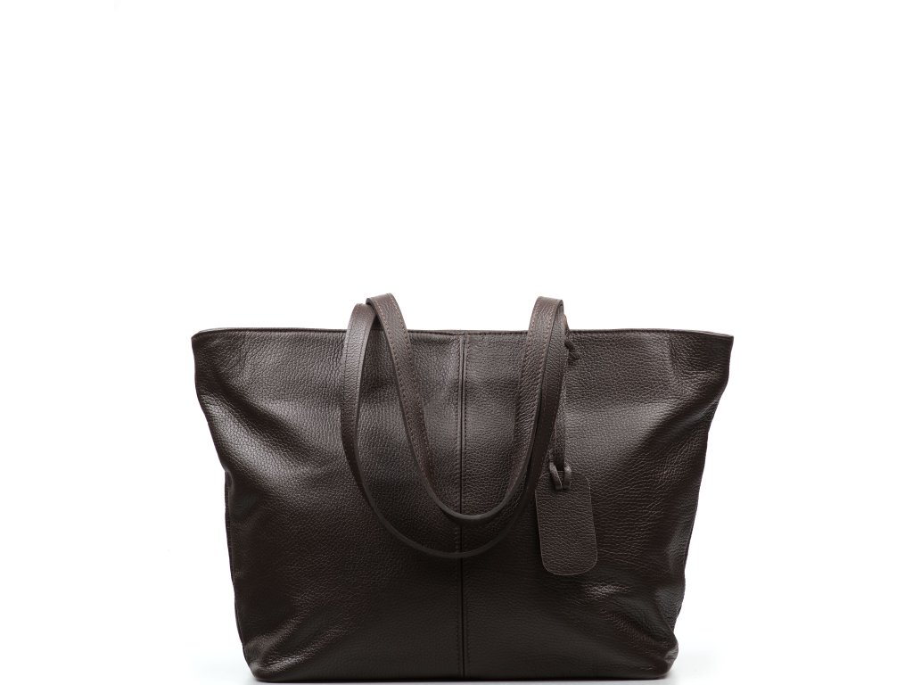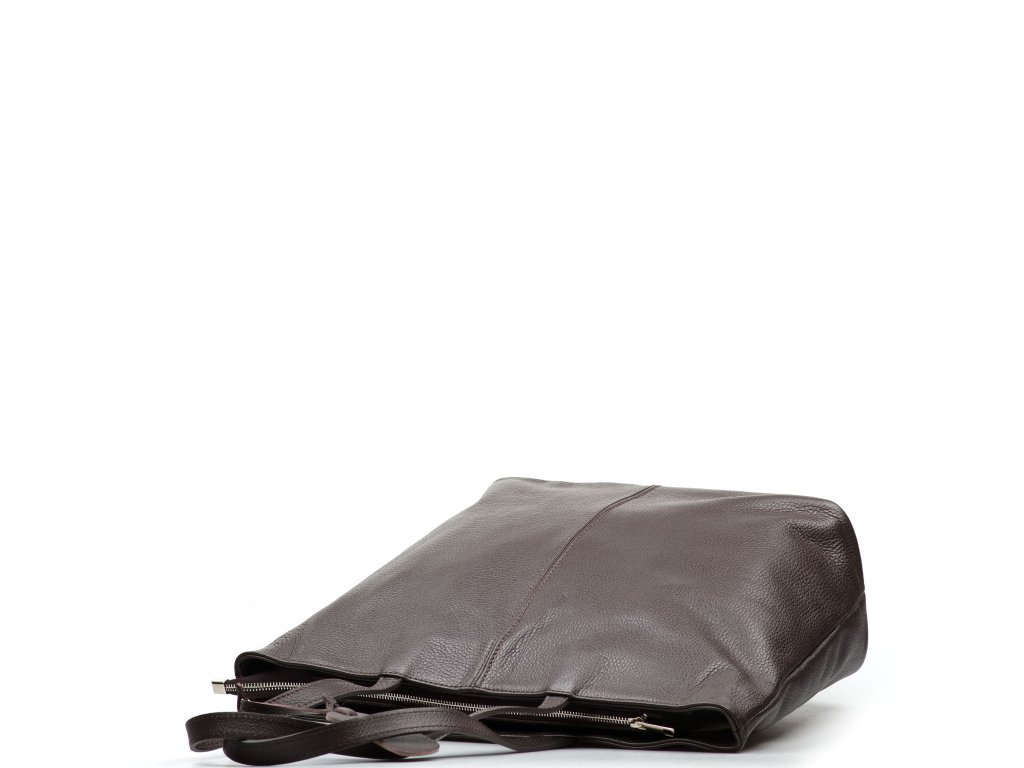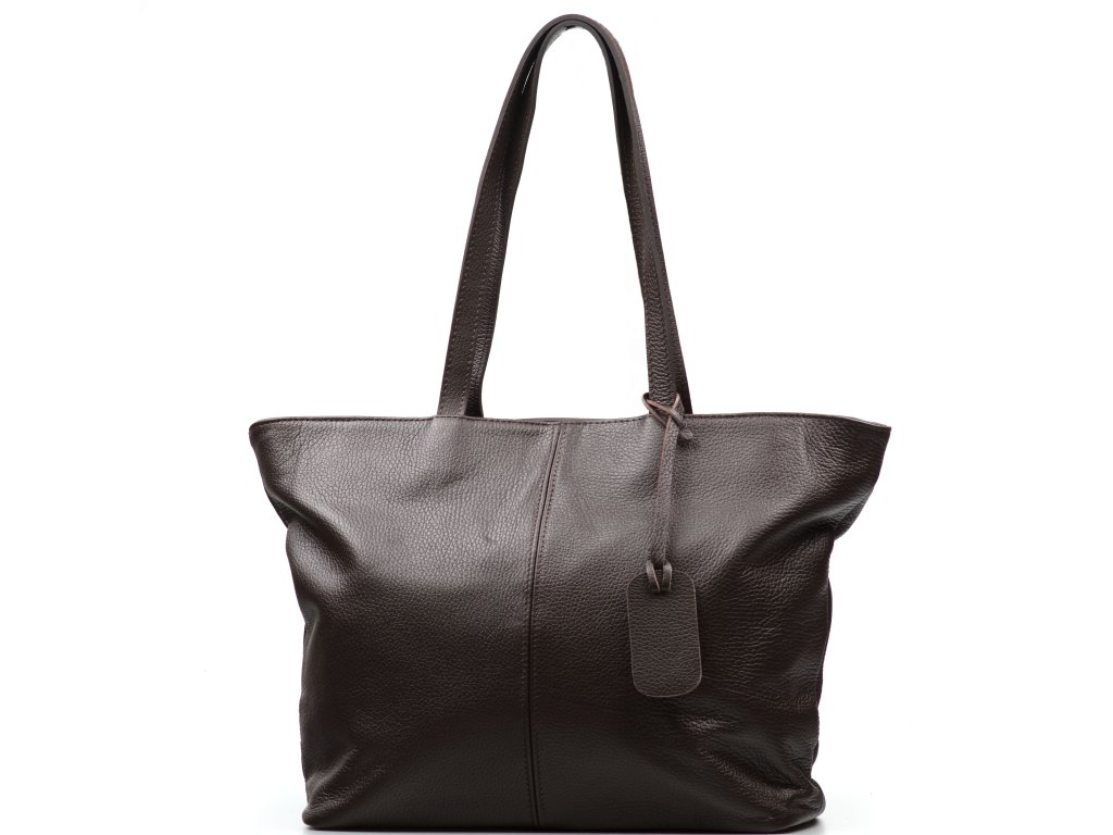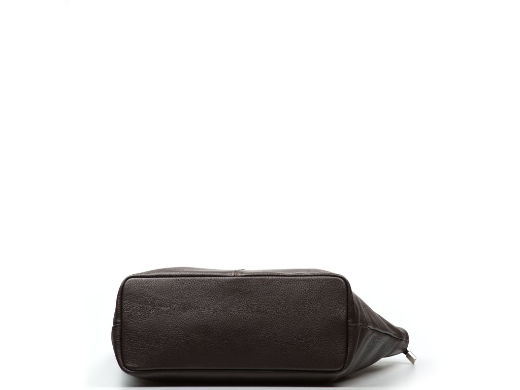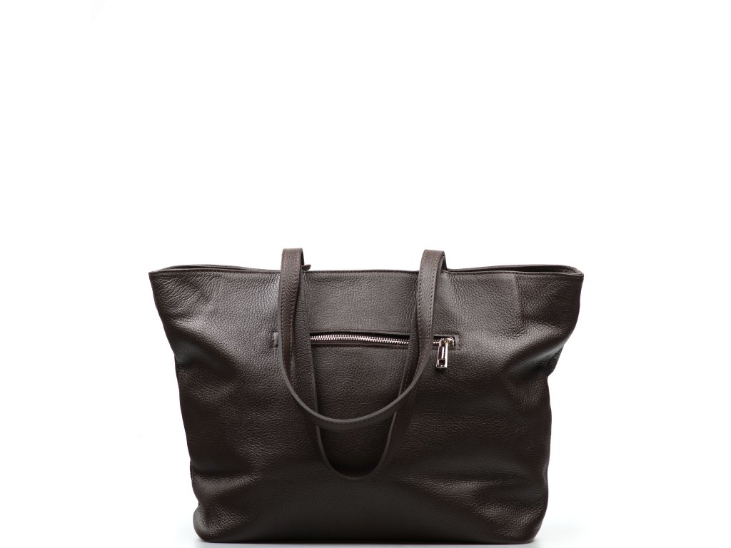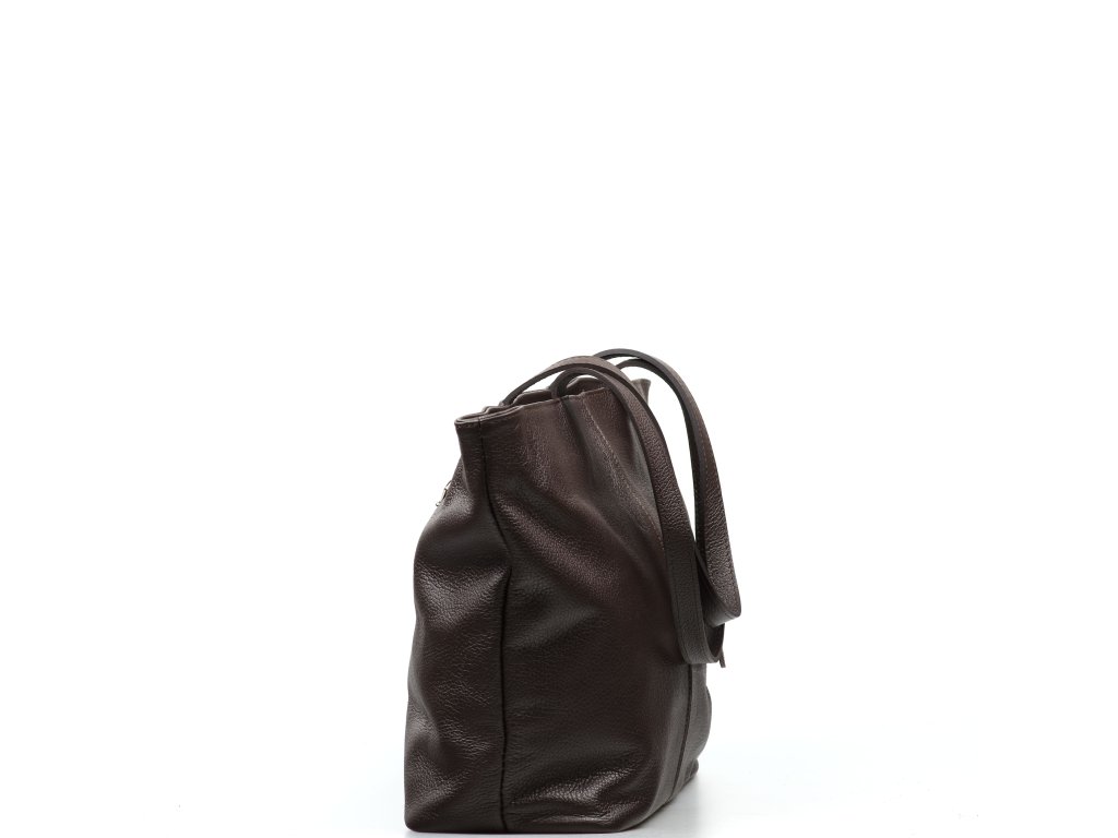 Dámská minimalistická kožená kabelka pro volný čas, do ruky i přes rameno v hnědé barvě. Vnitřní část disponuje jednou hlavní kapsou a dvěma bočními, jež je jedna uzavíratelná zipem.