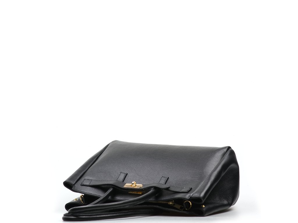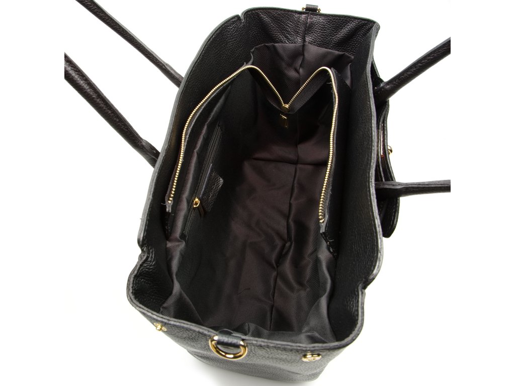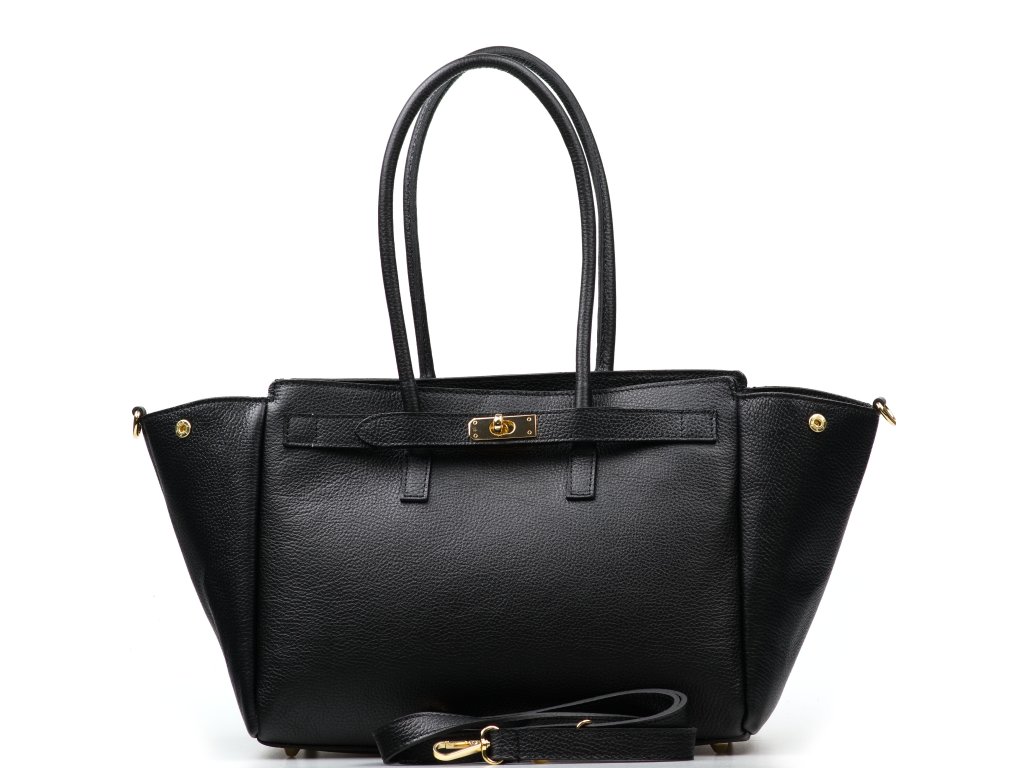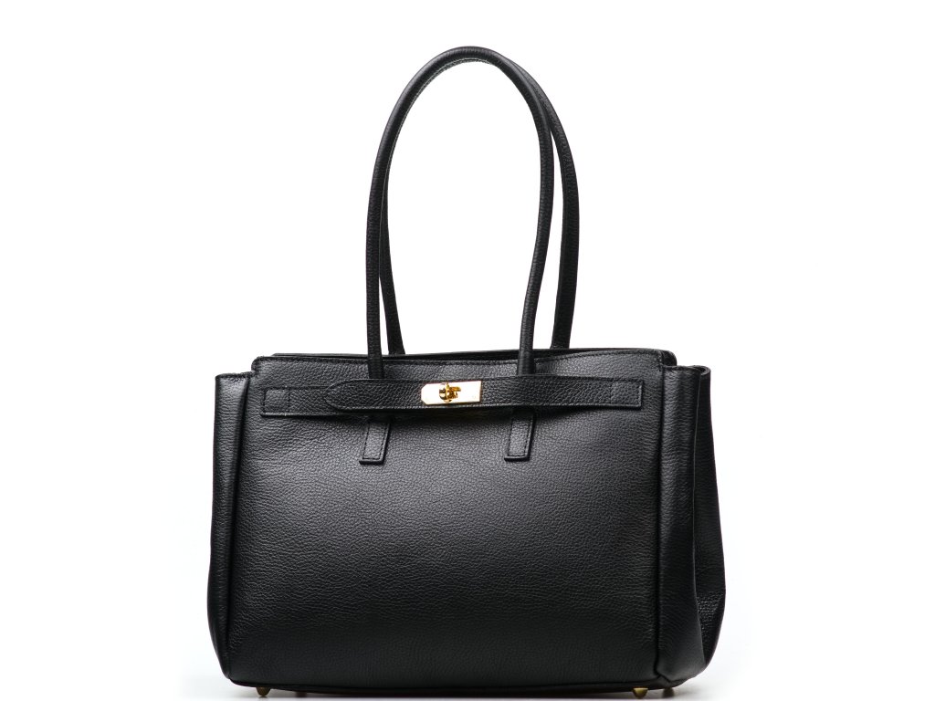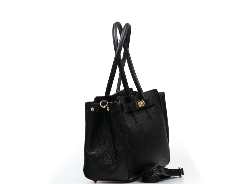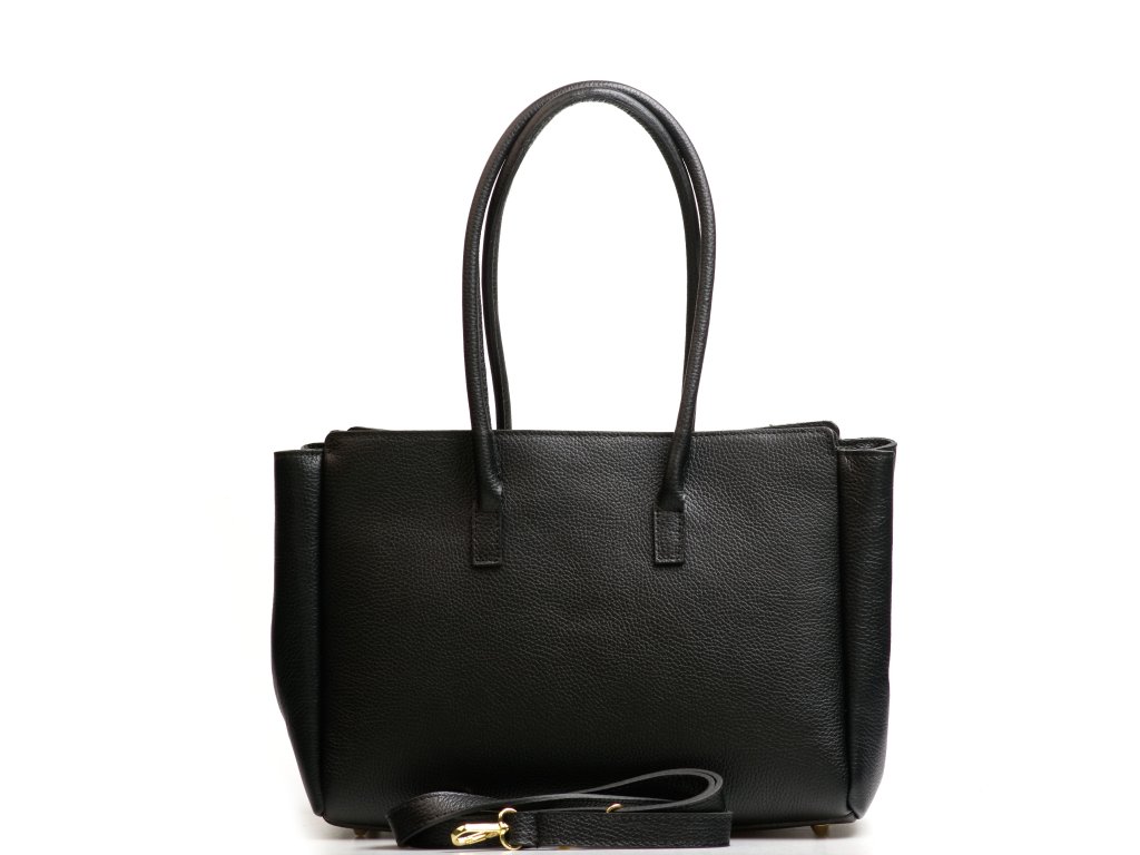Elegantní kožená kabelka do ruky či přes rameno v černé barvě. Kabelku lze nosit ve dvou tvarových variantách. Interiér disponuje jednou velkou úložnou kapsou a malými bočními kapsami. Kabelka se uzavírá zipem.