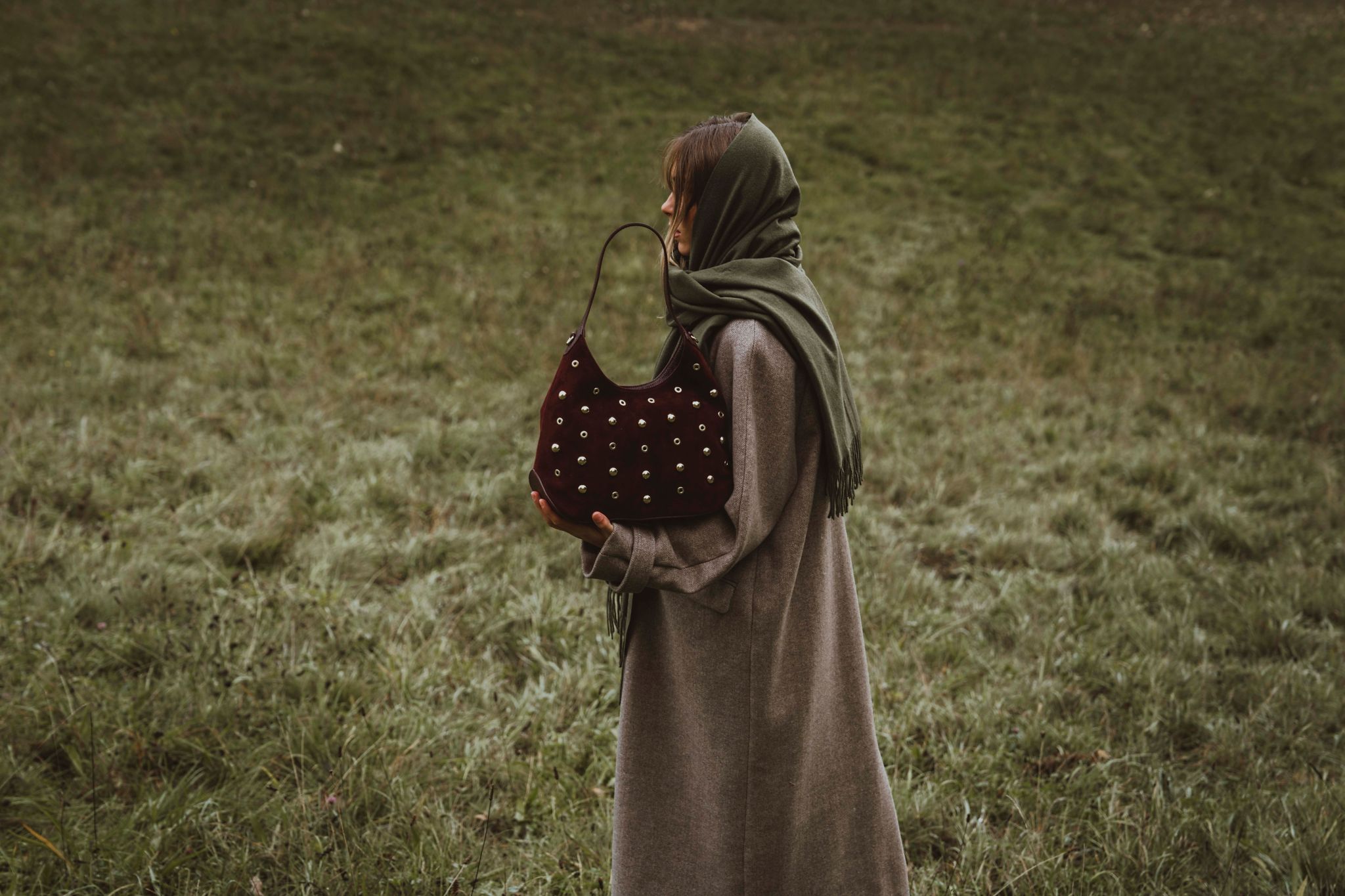 Kožená semišová kabelka přes rameno v bordó barvě působí elegantně a nadčasově, ideální pro ženy, které milují styl i praktičnost. Interiér nabízí jednu prostornou kapsu a menší boční přihrádku pro přehledné uspořádání věcí. Po jedné straně kabelku zdobí zlaté cvoky, které jí dodávají moderní a originální vzhled. Díky přídavnému popruhu ji lze nosit i jako crossbody, což zaručuje pohodlí při každodenním nošení. Kabelka se uzavírá zipem.