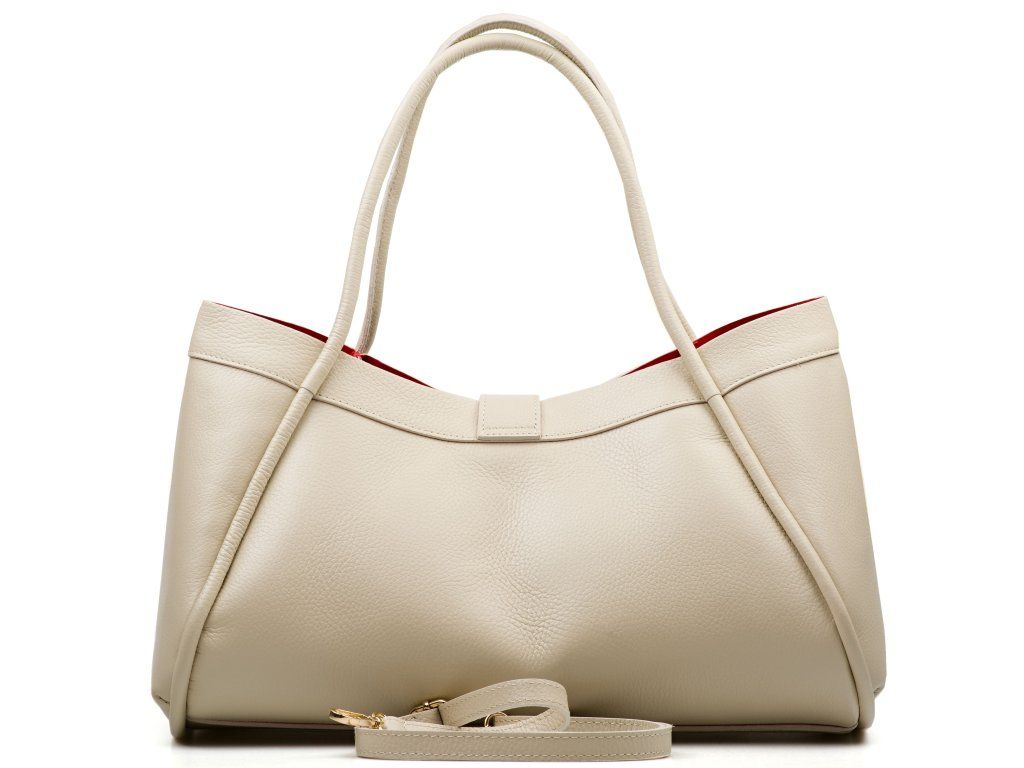 Elegantní kožená kabelka v béžové barvě je nadčasovým doplňkem, který snadno sladíte s každým outfitem. Skvěle doplní jak formální look do práce, tak i ležérnější kombinaci na běžné nošení. Díky promyšlenému designu ji můžete nosit v ruce i přes rameno, a přizpůsobit ji tak přesně svým potřebám i příležitosti. Velkou předností této kabelky jsou dvě tvarové varianty nošení, díky kterým získáte hned dva elegantní vzhledy v jednom. Interiér nabízí jednu hlavní prostornou kapsu a přídavnou volná kapsa, která vám usnadní organizaci drobností, jež chcete mít stále po ruce. Kabelka se uzavírá ozdobnou klopou, která celému modelu dodává sofistikovaný a ženský vzhled.