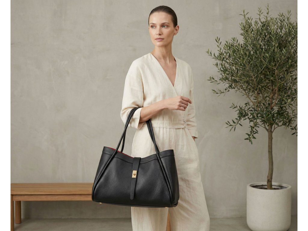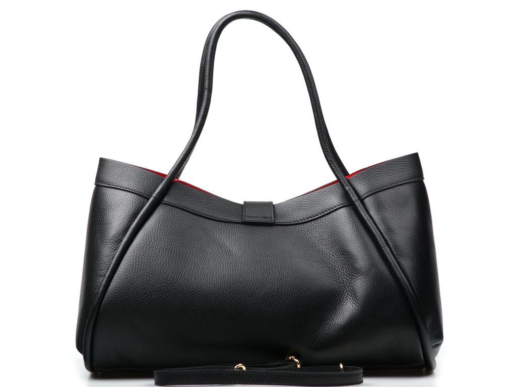 Elegantní kožená kabelka v černé barvě je nadčasovým doplňkem, který snadno sladíte s každým outfitem. Skvěle doplní jak formální look do práce, tak i ležérnější kombinaci na běžné nošení. Díky promyšlenému designu ji můžete nosit v ruce i přes rameno, a přizpůsobit ji tak přesně svým potřebám i příležitosti. Velkou předností této kabelky jsou dvě tvarové varianty nošení, díky kterým získáte hned dva elegantní vzhledy v jednom. Interiér nabízí jednu hlavní prostornou kapsu a přídavnou volná kapsa, která vám usnadní organizaci drobností, jež chcete mít stále po ruce. Kabelka se uzavírá ozdobnou klopou, která celému modelu dodává sofistikovaný a ženský vzhled.