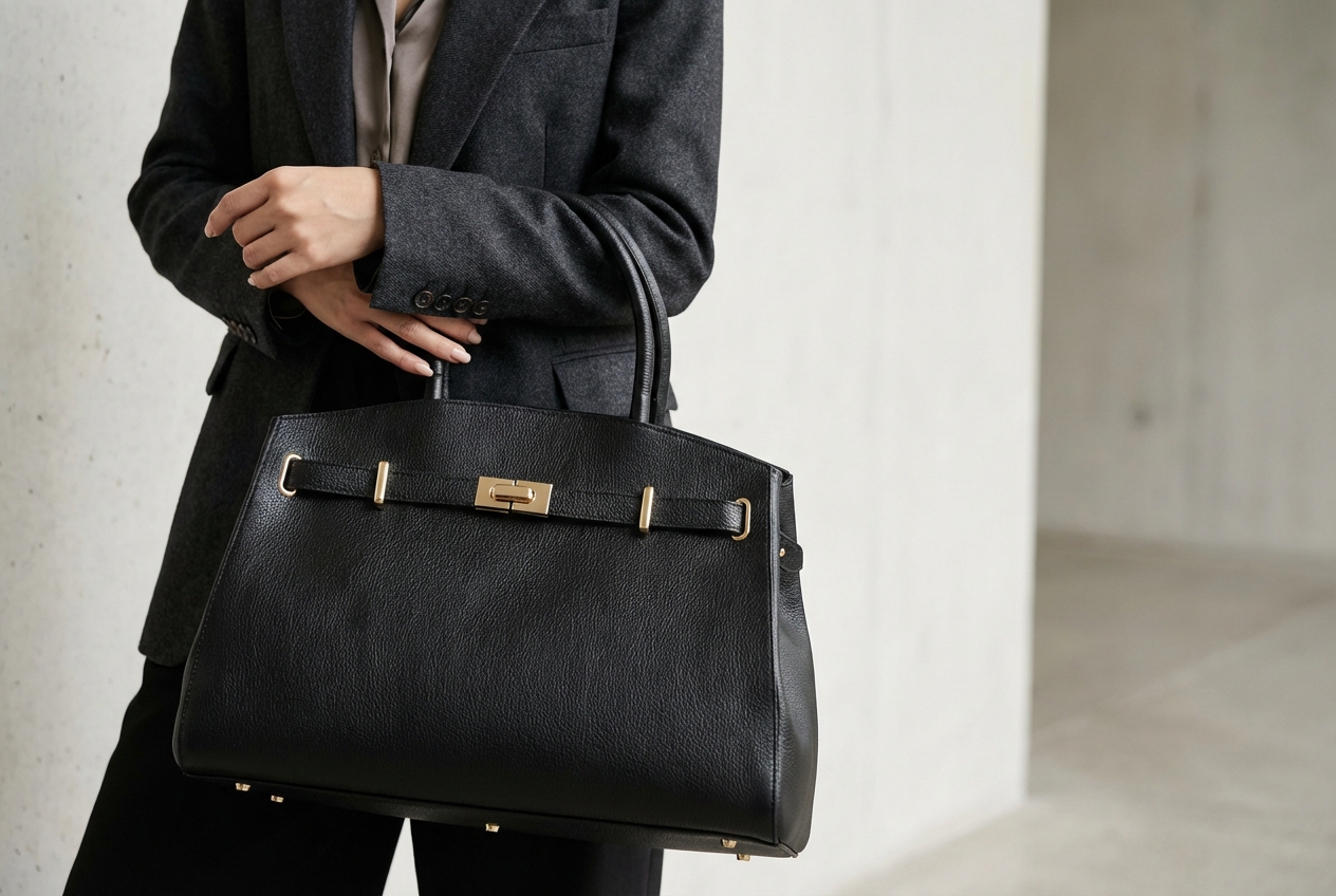 Kožená kabelka v černé barvě je elegantním a nadčasovým doplňkem, který lze nosit v ruce i přes rameno. Interiér nabízí jednu prostornou hlavní kapsu a menší boční kapsu pro přehledné uložení drobností. Horní část kabelky zdobí kožený popruh se zlatými sponami, který podtrhuje její sofistikovaný vzhled. Uzavírání na zip zajišťuje, že všechny osobní věci zůstanou bezpečně uložené. Kabelka disponuje přídavným popruhem. Stylový a praktický kousek, který snadno doplní každý outfit.
