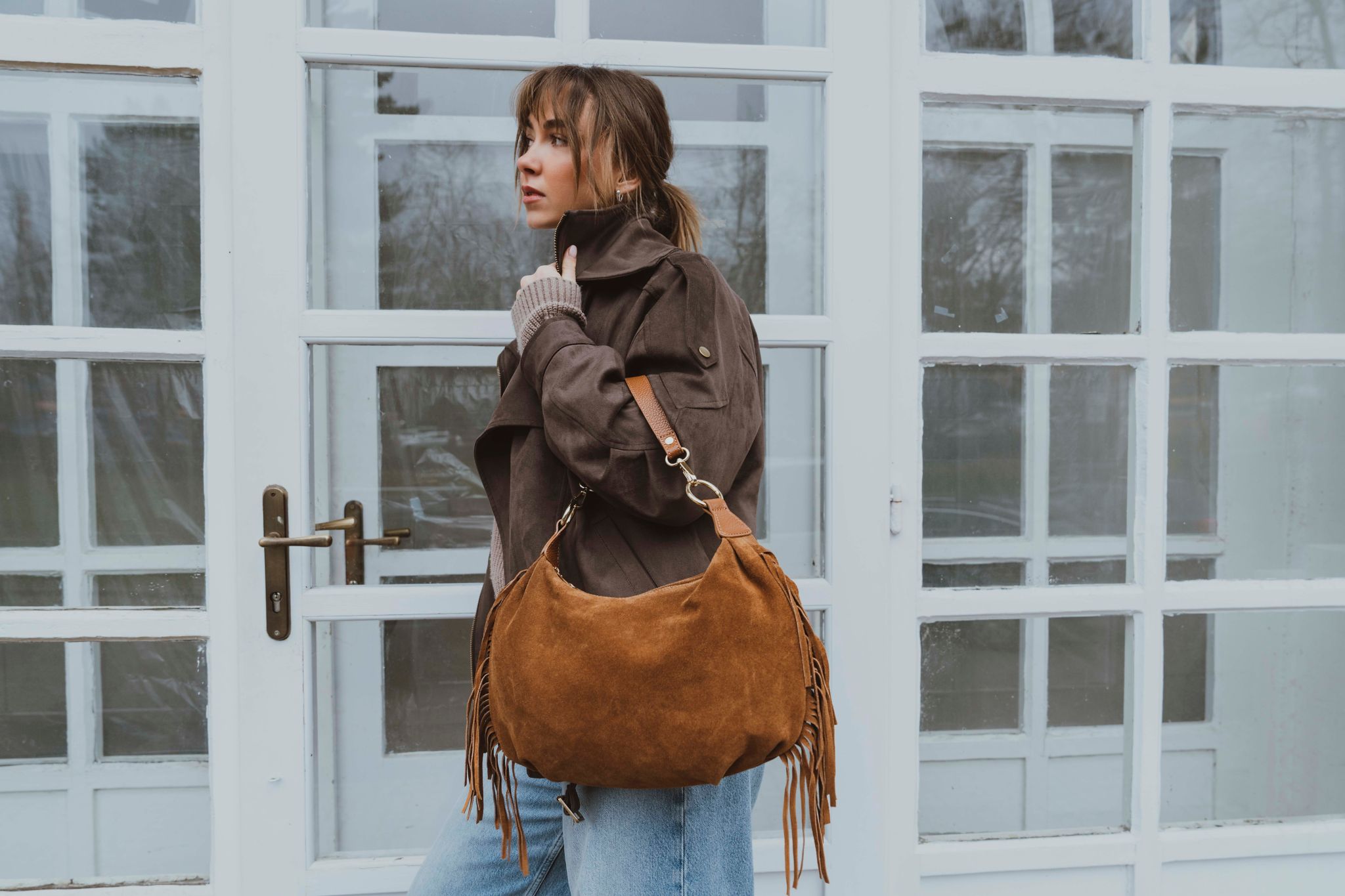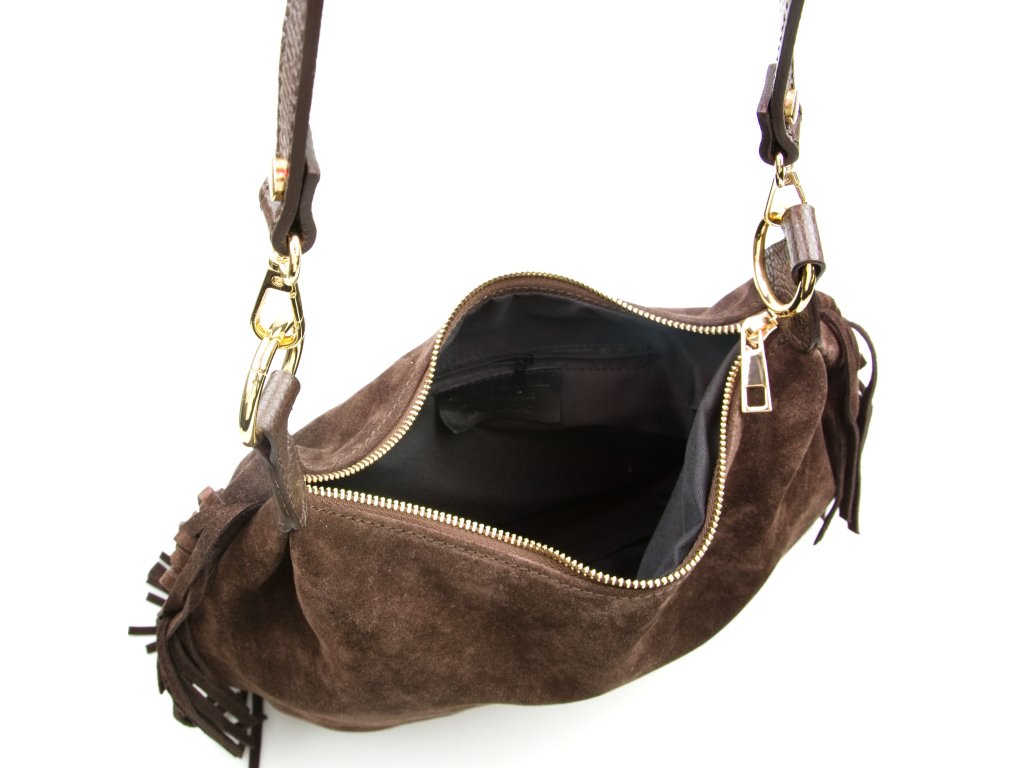 Kožená kabelka s třásněmi Patricia tmavě hnědá