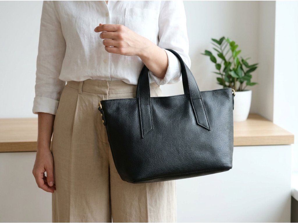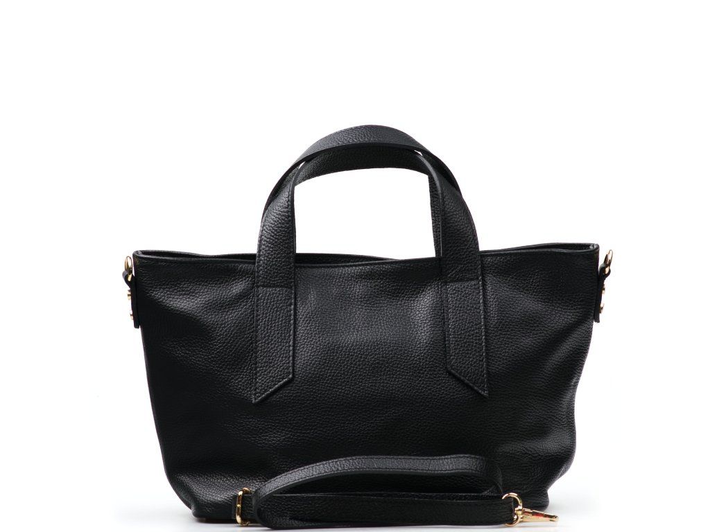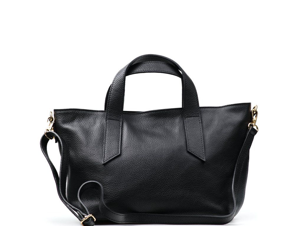 Kožená kabelka do ruky v černé barvě působí stylově a nadčasově. Interiér nabízí jednu prostornou hlavní kapsu a malé boční kapsy. Součástí kabelky je přídavný popruh pro nošení přes rameno či jako crossbody. Kabelka se uzavírá zipem, což zajišťuje bezpečné uložení všech nezbytností.