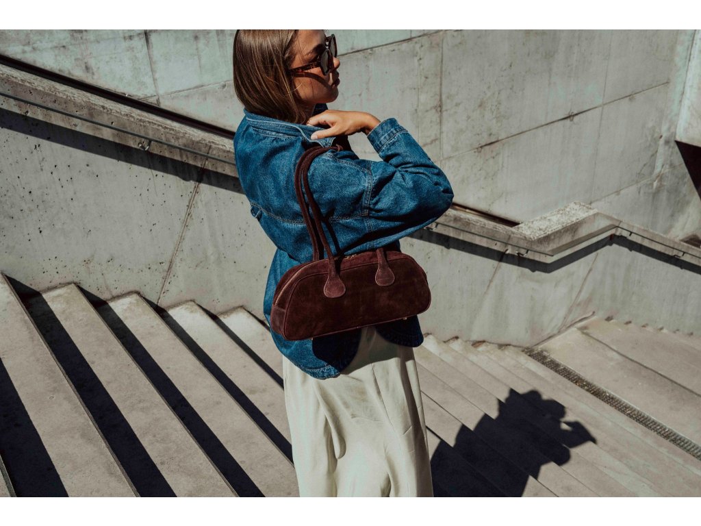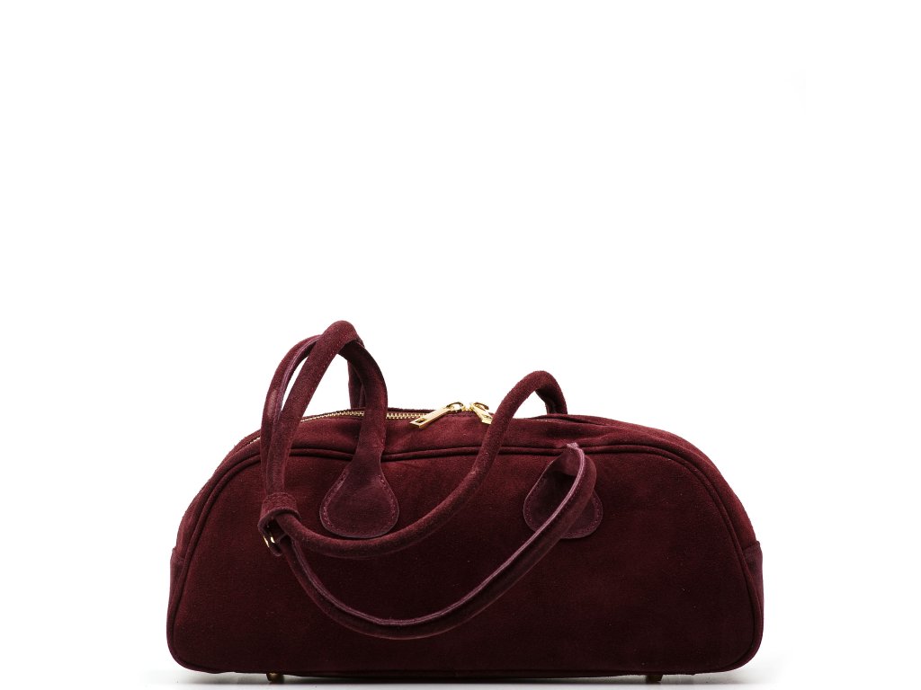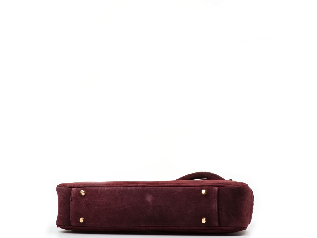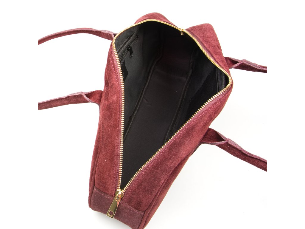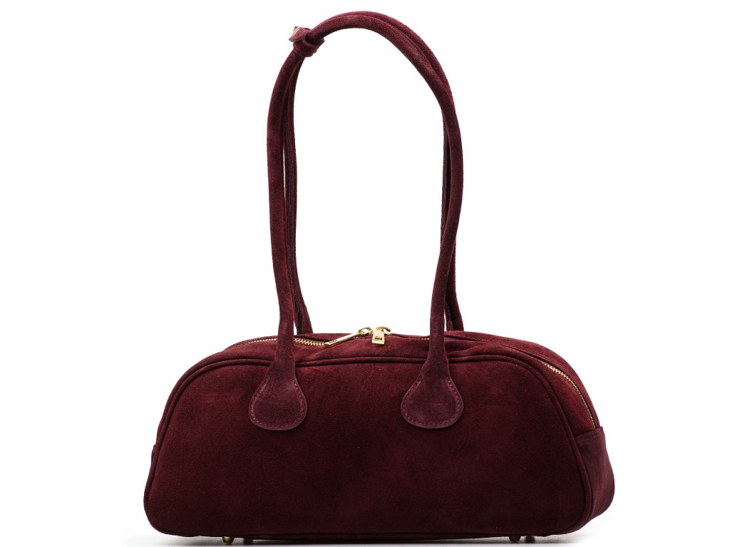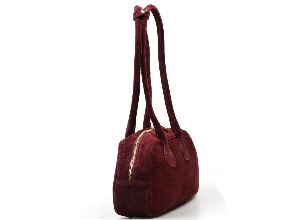 Kožená kabelka do ruky či přes rameno v bordó barvě. Tvar je zaoblený, což i pro její velikost zaručuje dostatek prostoru. Kabelka je zdobená kovovými detaily ve zlaté barvě. Interiér disponuje jednou velkou úložnou kapsou a malou po vnitřním boku. Kabelka se uzavírá zipem.