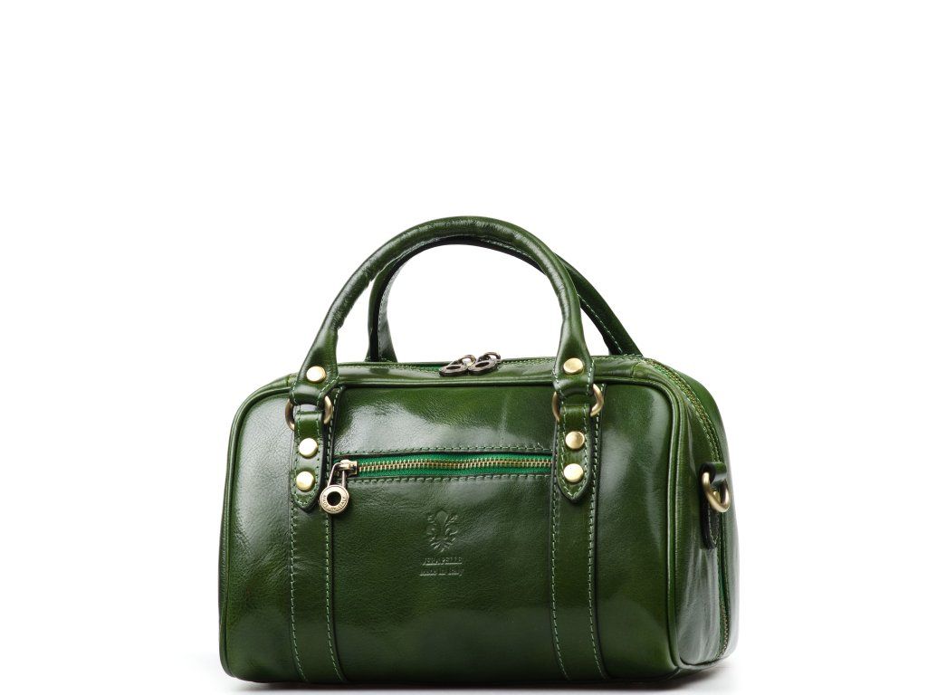 Kožená kabelka do ruky v zelené barvě je ztělesněním nadčasového stylu a sofistikovanosti. Luxusní vzhled podtrhuje přední kapsa na drobné věci. Kabelku lze nosit v ruce nebo přes rameno díky přídavnému popruhu. Interiér nabízí jednu prostornou hlavní kapsu. kabelka se uzavírá zipem.