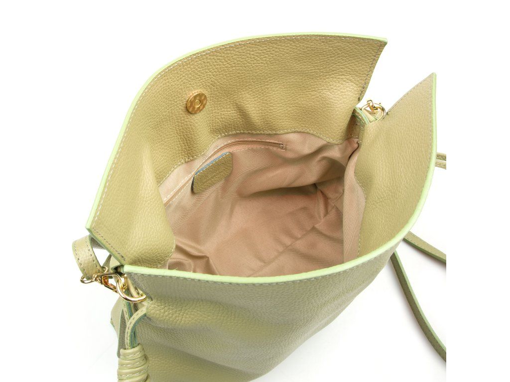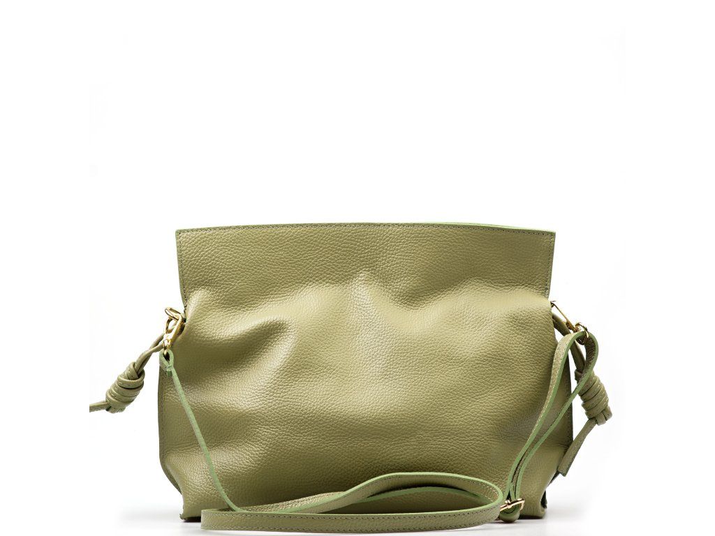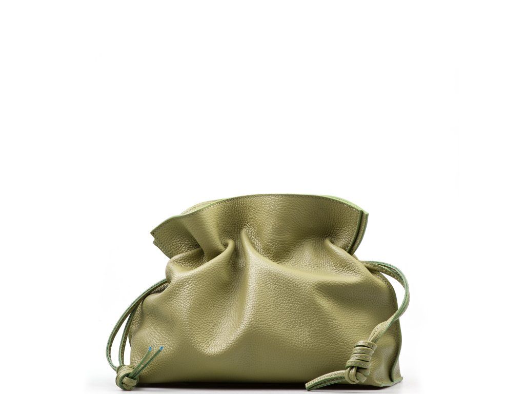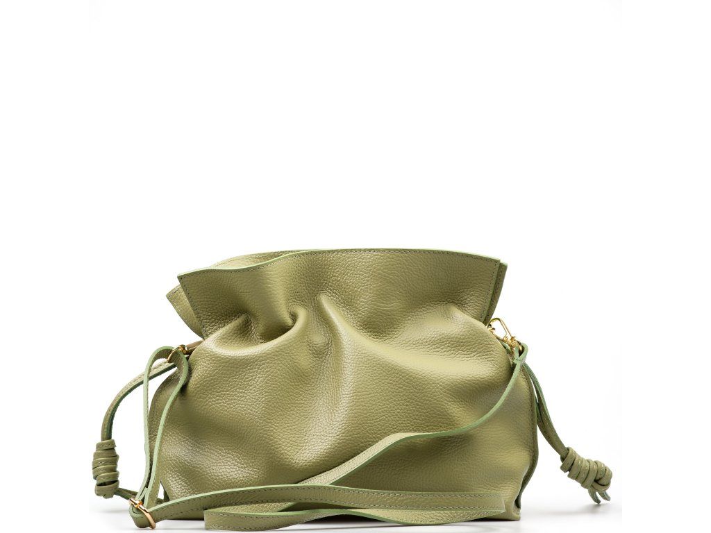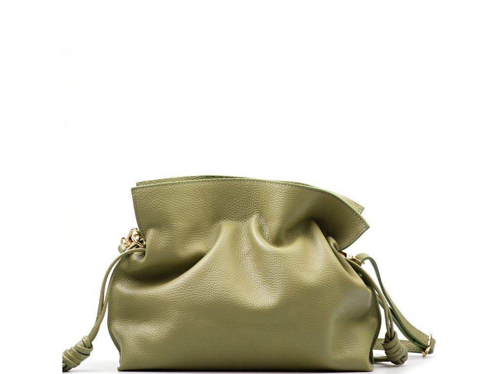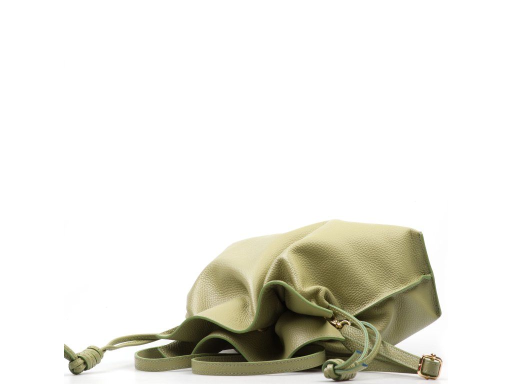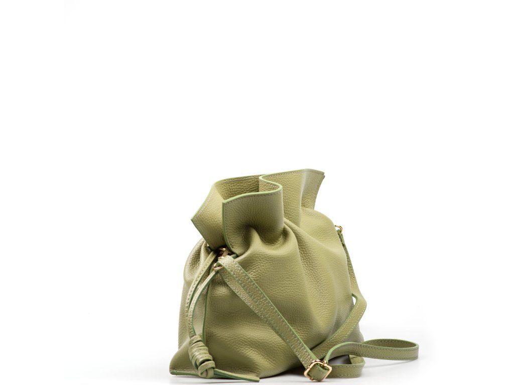 Kožená kabelka ve tvaru pytlíku v zelené barvě zaujme svým originálním designem a jemným zpracováním. V horní části se stahuje koženou šňůrkou, která vytváří efektní nařasení kůže a dodává kabelce šarm. Součástí je odnímatelný přídavný popruh s karabinami, díky kterému ji lze nosit nejen v ruce, ale i přes rameno či jako crossbody. Interiér nabízí jednu prostornou hlavní kapsu pro všechny nezbytnosti. Kabelka se uzavírá cvočkem a je ideálním doplňkem pro každodenní nošení i speciální příležitosti.