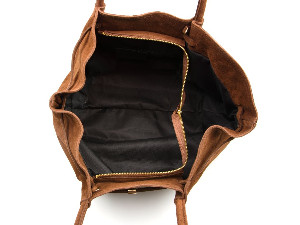 Luxusní semišová kabelka do ruky v hnědé barvě – stylový dámský doplněk pro každodenní nošení i večerní události. Elegantní design a dostatek prostoru pro telefon, peněženku i drobnosti. Ideální kabelka pro ženy, které chtějí vypadat šik. Kabelka se uzavírá zipem. Součástí kabelky je i dlouhý popruh pro nošení přes rameno.