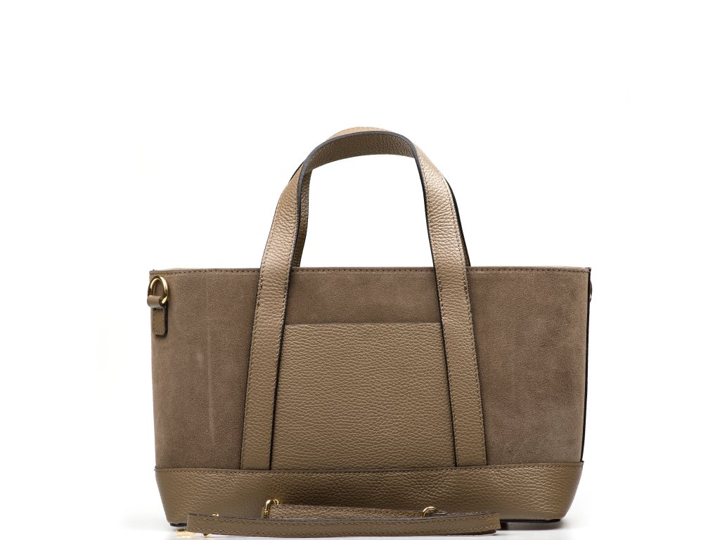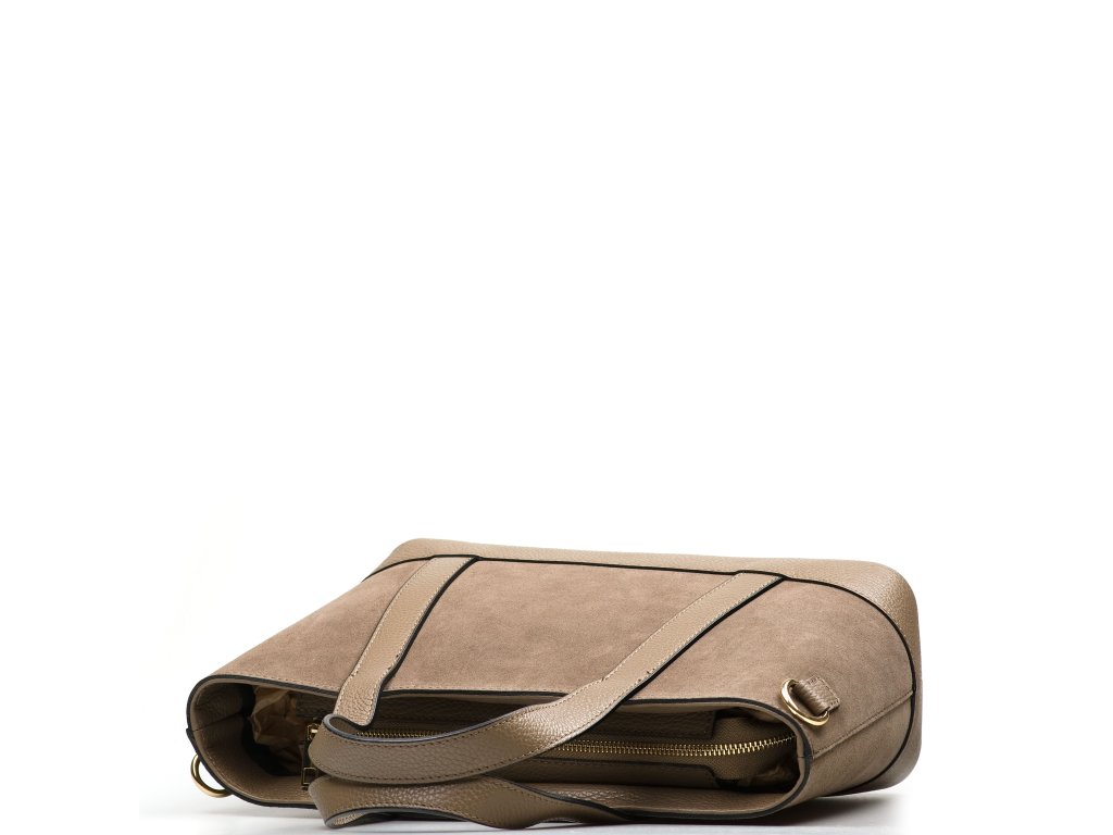 Semišová kožená kabelka do ruky či přes rameno ve fango barvě působí stylově a nadčasově. Její matná semišová úprava podtrhuje sofistikovaný vzhled a dodává celku jemnou eleganci. Interiér nabízí jednu prostornou hlavní kapsu a malé boční kapsy. Kabelku zdobí kombinace hladké a semišové kůže, která jí dodává jedinečný charakter. Kabelka se uzavírá zipem, což zajišťuje bezpečné uložení všech nezbytností.