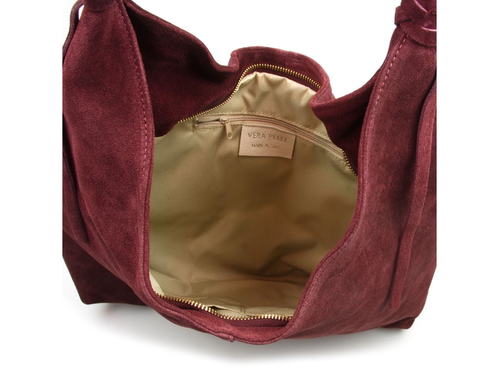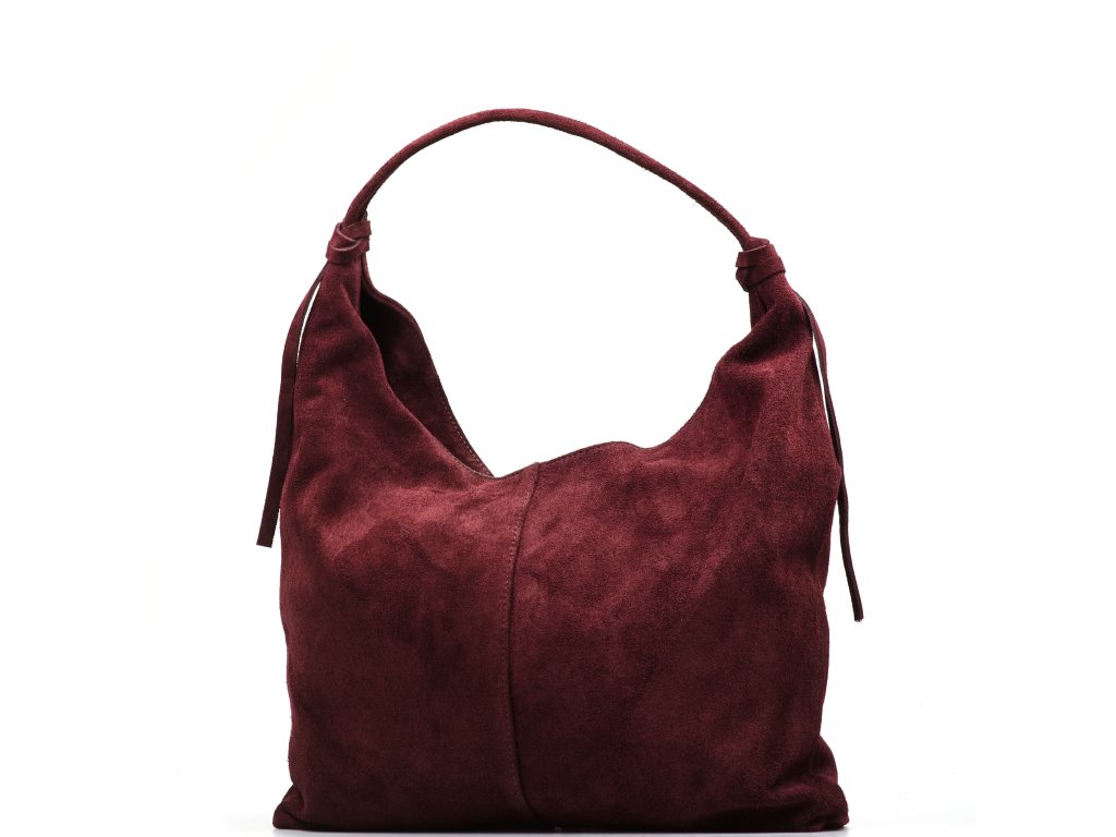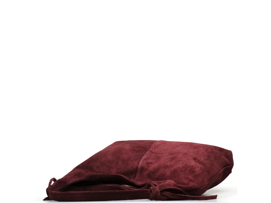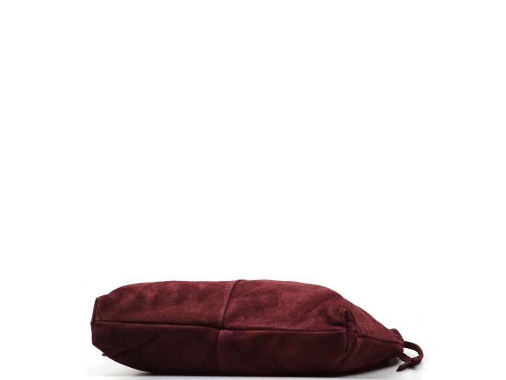 Praktická, minimalistická kabelka ze semišové kůže přes rameno pro volný čas v bordó barvě. Interiér kabelky disponuje jednou úložnou kapsou. Kabelka se uzavírá zipem.