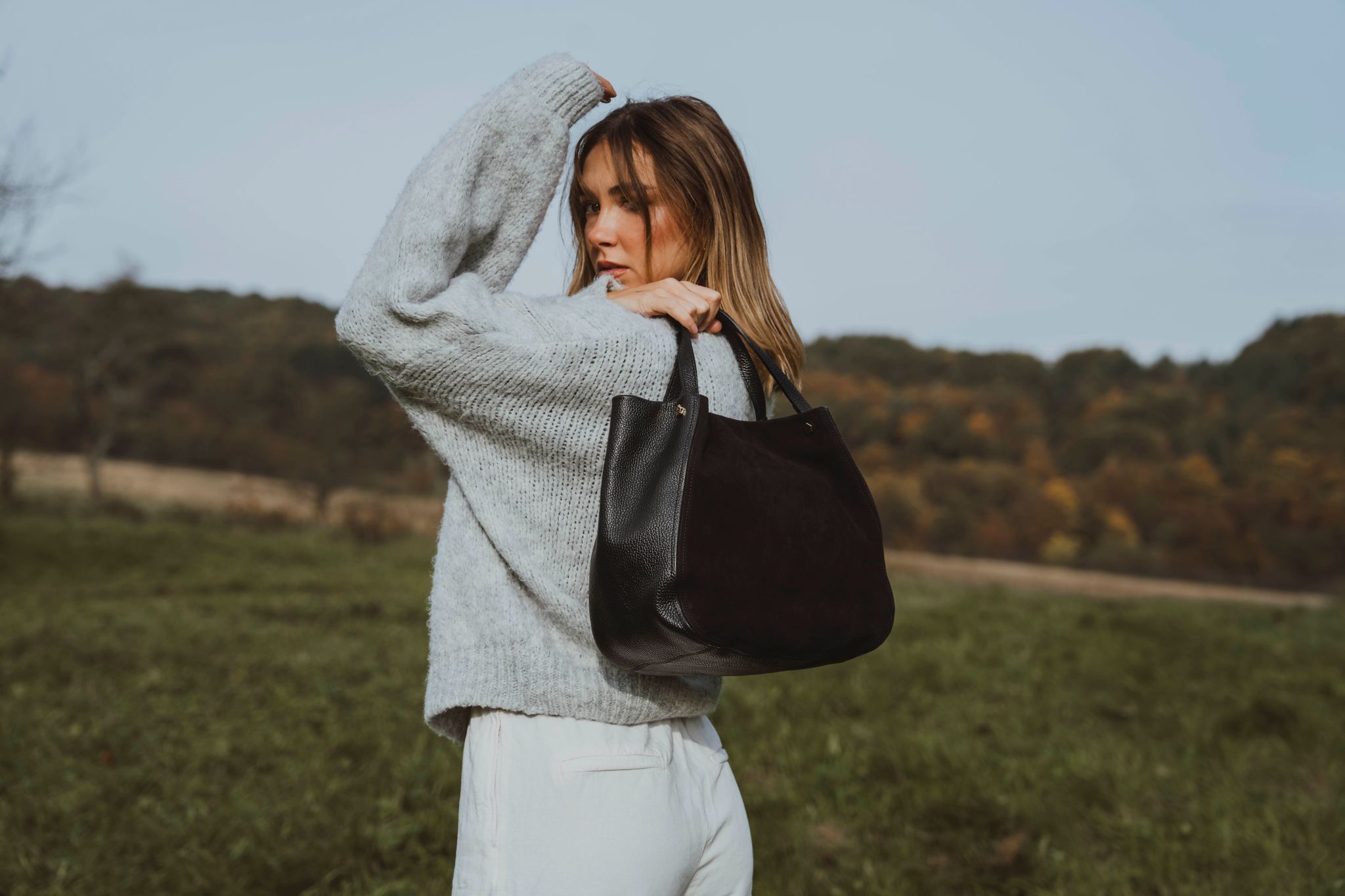 Elegantní kožená kabelka v koňakově hnědé barvě zaujme svou kombinací strukturované a semišové kůže, která jí dodává nadčasový a sofistikovaný vzhled. Kabelku lze nosit v ruce nebo díky posuvnému popruhu pohodlně přes rameno. Interiér nabízí jednu prostornou hlavní kapsu doplněnou o menší boční přihrádky pro přehledné uspořádání všech nezbytností. Kabelka se bezpečně uzavírá zipem, takže tvé věci zůstanou vždy v bezpečí. Stylový doplněk, který dokonale podtrhne tvou eleganci.