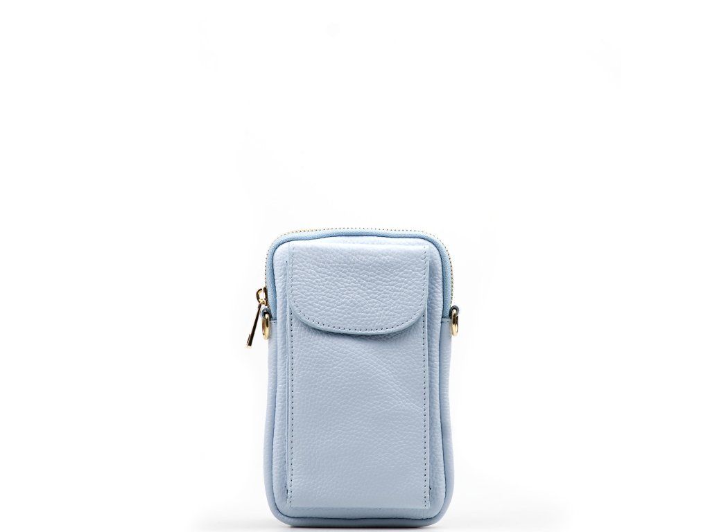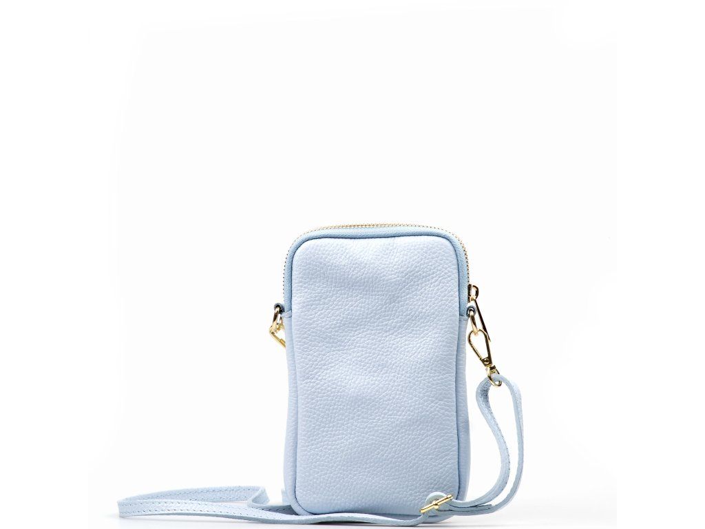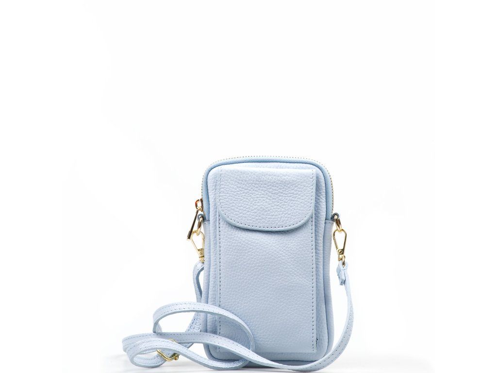 Kožená mini kabelka Poppy na telefon světle modrá