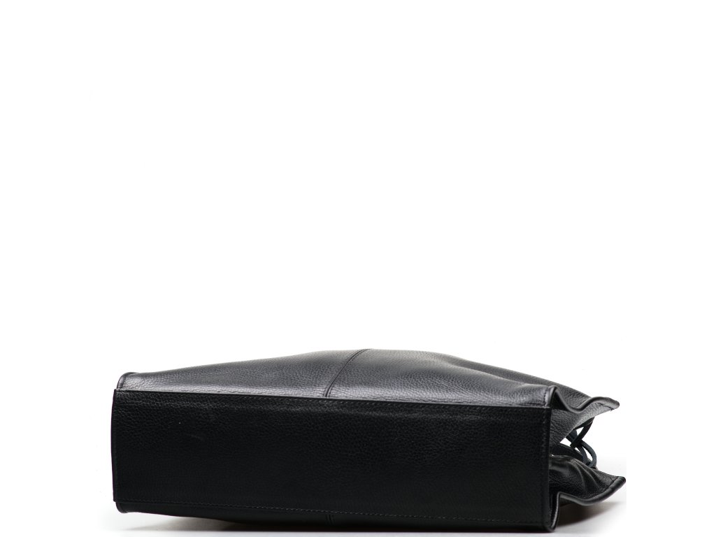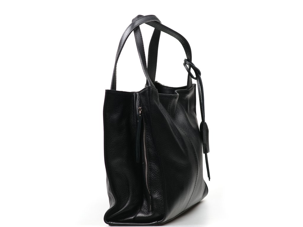 Dámská kožená kabelka do ruky v černé barvě. Minimalistická kabelka s boční kapsou na zip. Interiér kabelky disponuje jednou hlavní úložnou kapsou a malými po vnitřních bocích. Kabelka se uzavírá zipem.