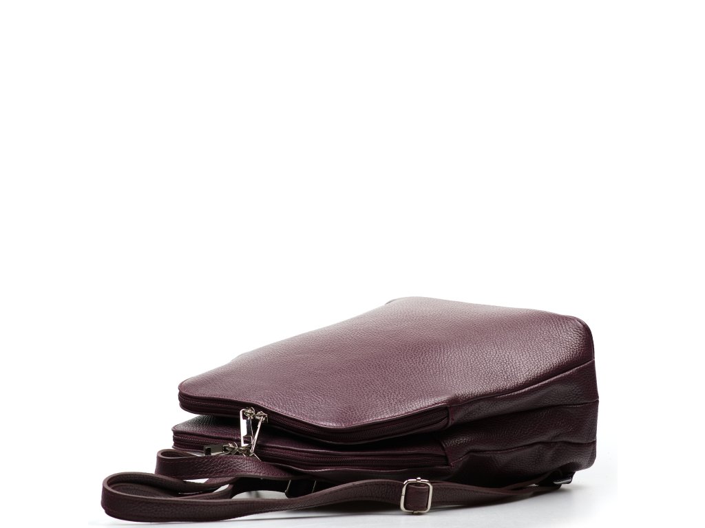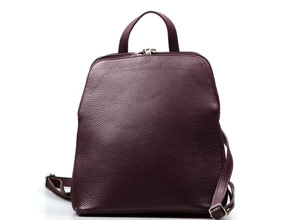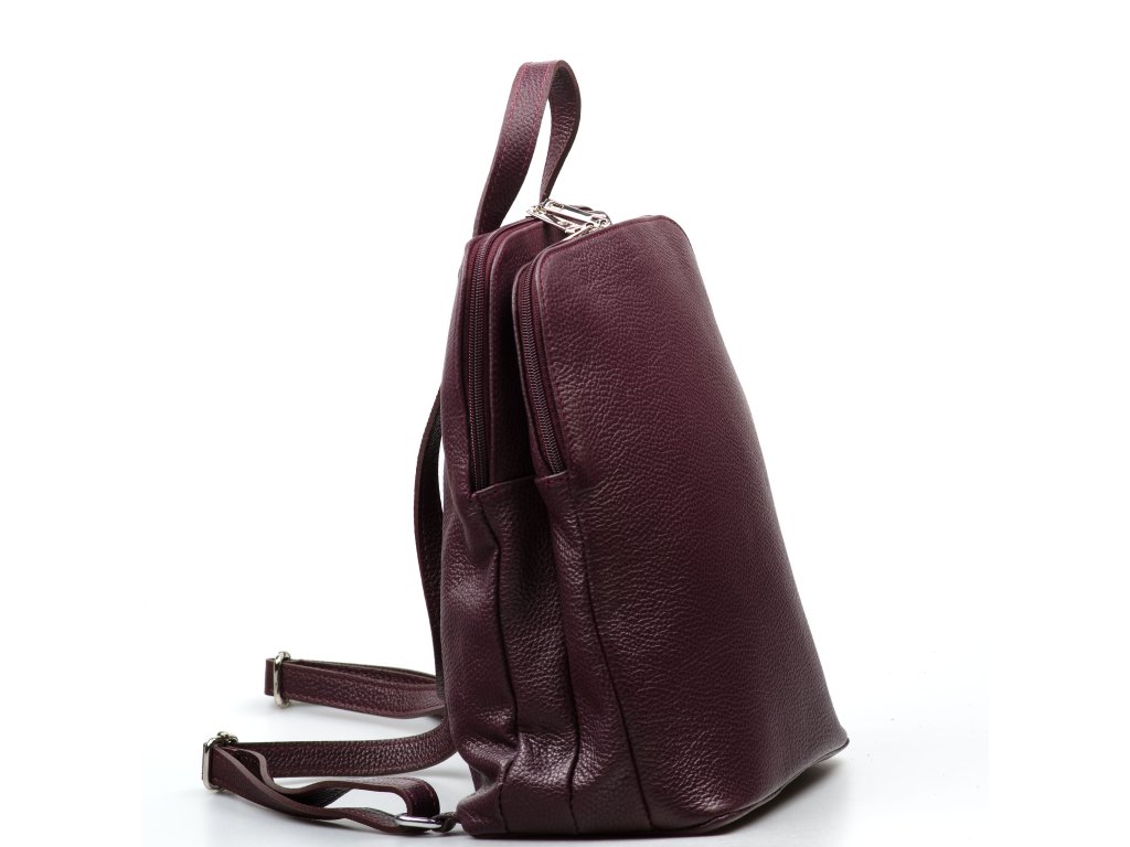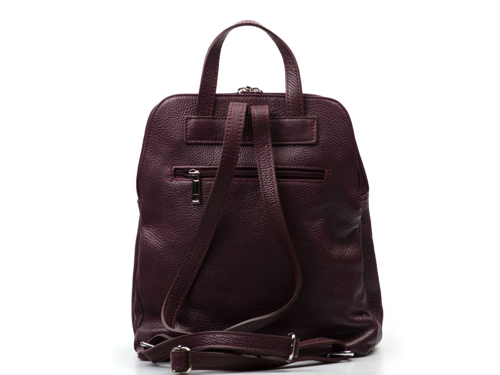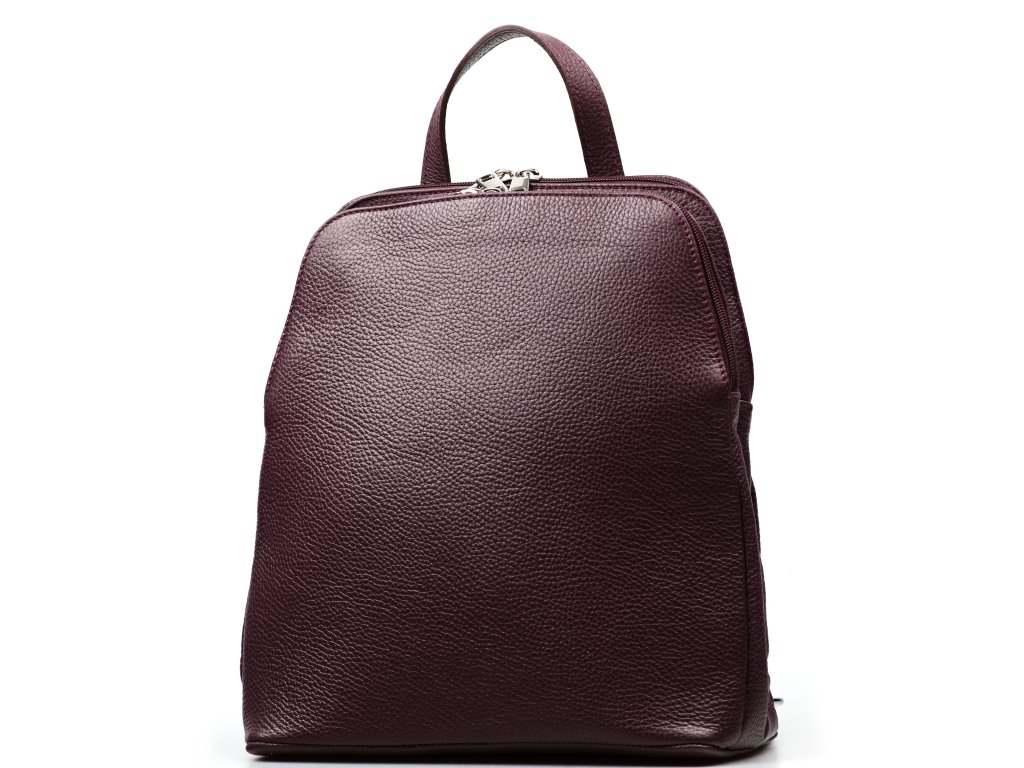 Dámský kožený batůžek pro volný čas v bordó barvě. K dispozici jsou dvě úložné kapsy se samostatným zavíráním na zip. interiér batůžku má jednu malou kapsu na zip. Zadní strana batůžku disponuje jednou menší funkční kapsou na zip.