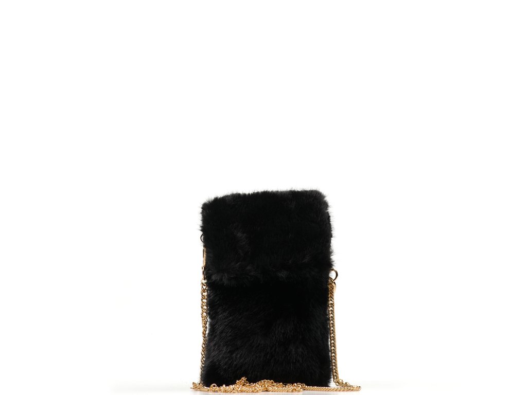 Mini kabelka na telefon Alex Max s kožešinou černá