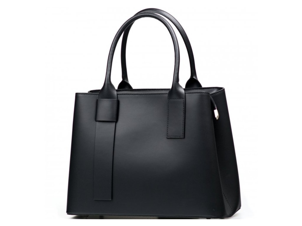 Luxusní kožená kabelka do ruky i přes rameno v černé barvě. Kabelka je vyrobená z hladké kůže. Součástí kabelky je přídavný popruh s karabinami. Interiér kabelky má k dispozici tři úložné kapsy, uprostřed na zip. Kabelka se uzavírá zipem.